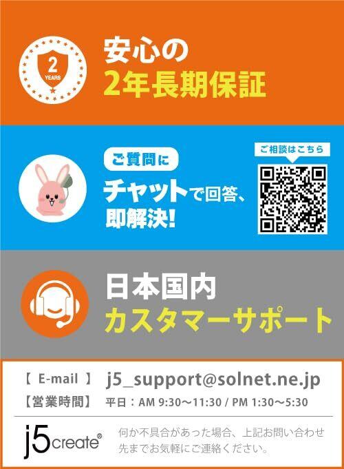 ■【安心の高品質!】j5createは高品質なエレクトロニクスを提供しており、耐久性も抜群。日本の技術基準に基づいた設計で、安全にご利用いただけます。