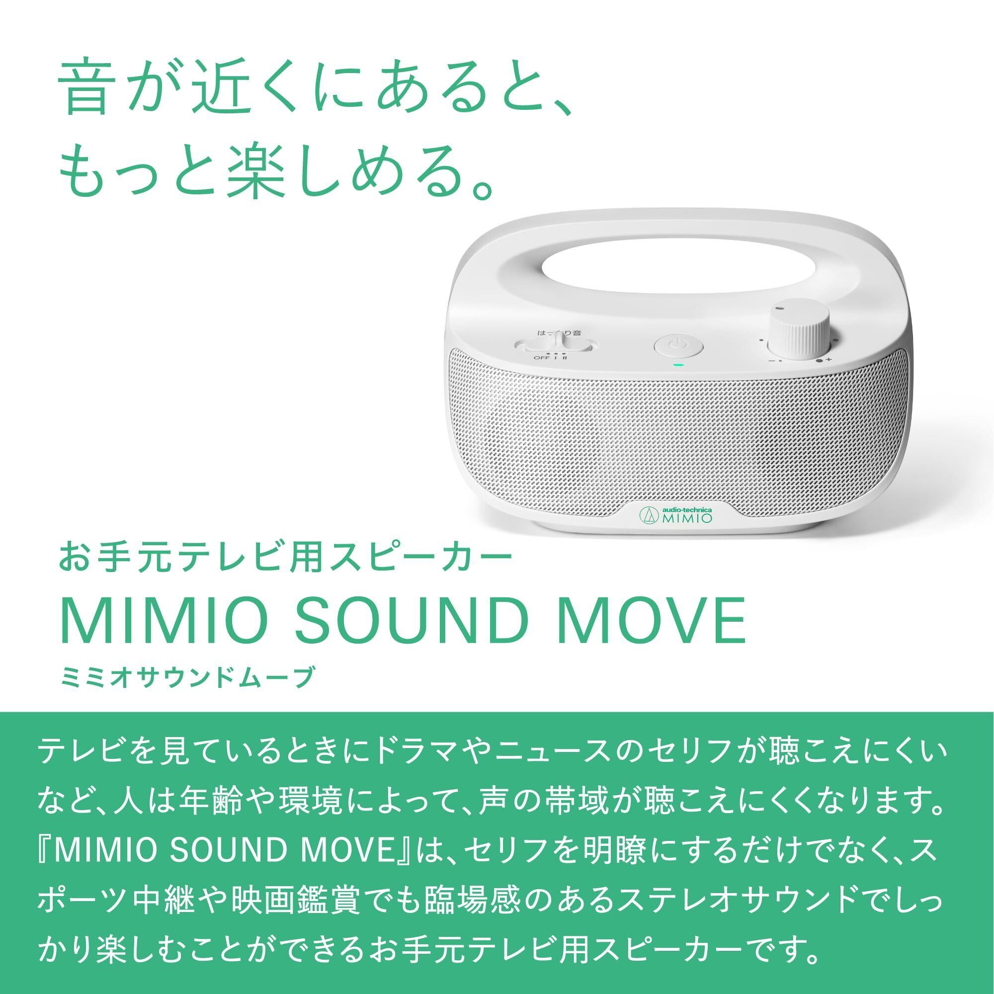 ■【ワイヤレスで自由な音楽体験!】オーディオテクニカミミオの「MIMIO SOUND MOVE」は、2.4GHzのワイヤレス接続を採用し、ストレスフリーな音楽体験を提供します!スピーカーを置くだけで、テレビや音楽をお好きな場所で楽しめます。この手元スピーカーで、どこでも快適にお楽しみください!