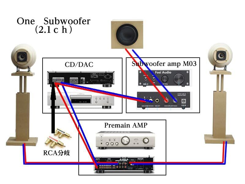 アンプはパッシブサブウーファーを駆動できる2.1chアンプが別途必要です。推奨アンプは「Fosi Audio M03」「Fosi Audio BT30D」などです。