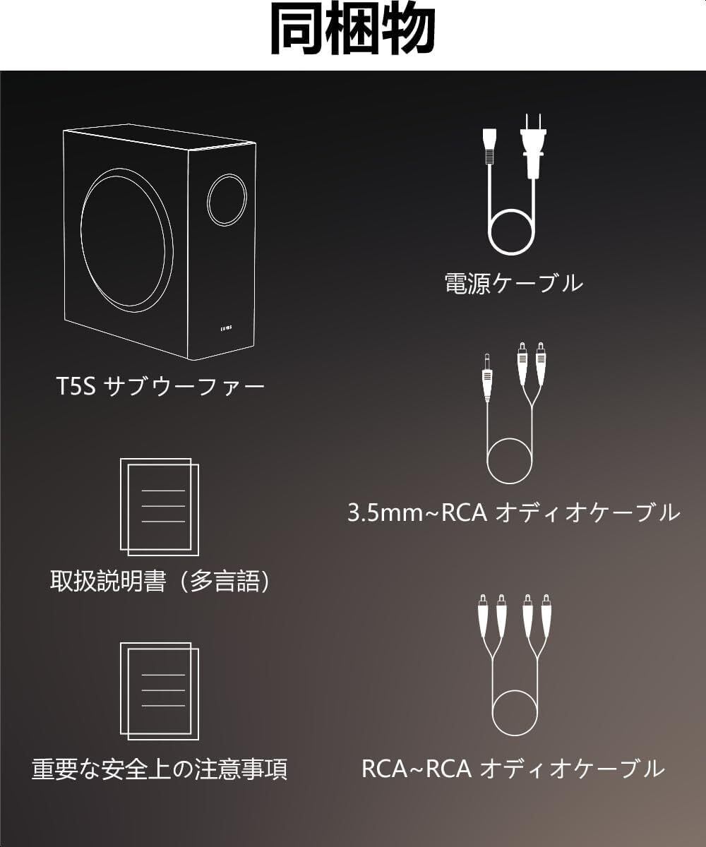 ■【重低音をしっかり支えるパワードサブウーファー!】Edifier製のT5sは、70Wのパワフルな出力を持つサブウーファーです。深みのある重低音を再生し、音楽や映画の迫力をより一層引き立てます。ホームシアターや音楽制作にもおすすめの一品です!