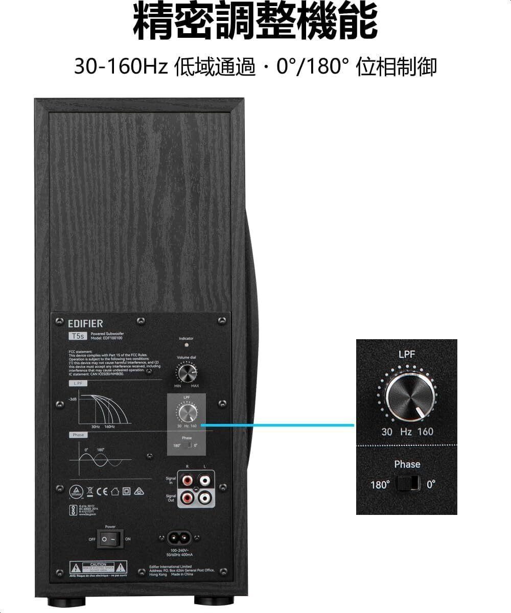 Edifier製 パワードサブウーファー T5s(ブラウン) 70W 入力系統:RCA スピーカーに数珠つなぎ可能【日本正規代理店製品】 ED-T5S-BR
