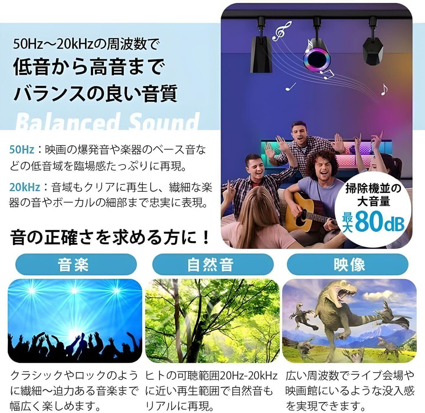 再生周波数帯域:50Hz-20kHz | スピーカー感度:80dB/mW