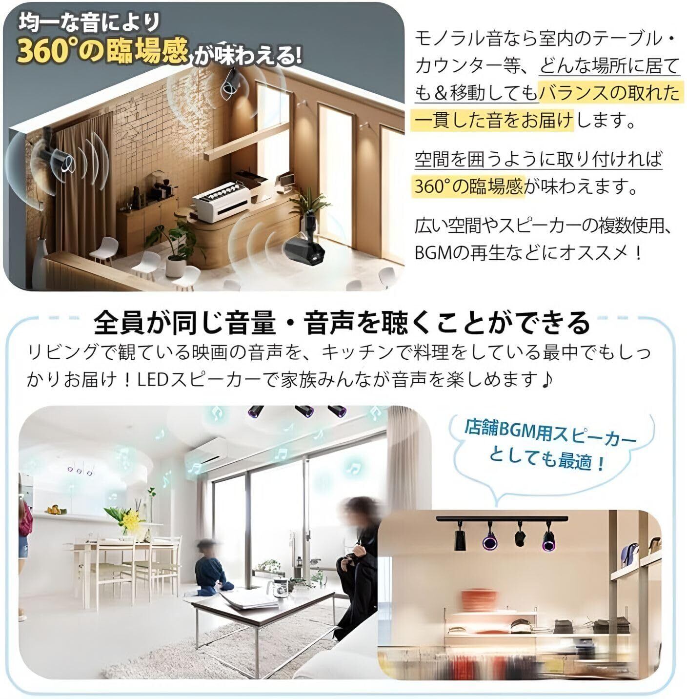 bluetooth LED スピーカー コンパクト ライティングレール用 ブルートゥース 12W リモコン付き LDRSPK12-BK (ブラック)