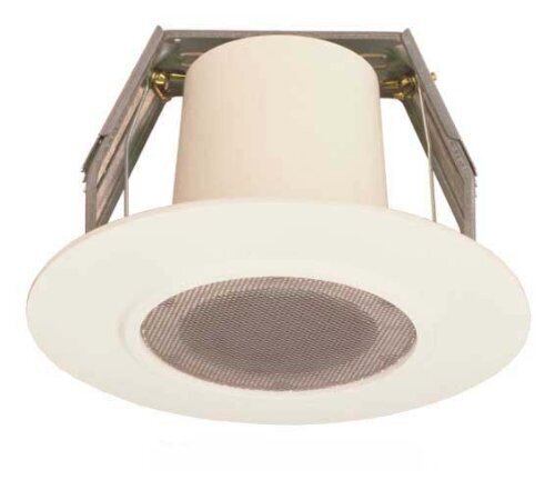 高耐入力・小口径の防滴型フルレンジスピーカーユニットを採用し、完全密閉構造とした天井埋込型のスピーカーです。V字ばね方式のワンタッチ施工スピーカーで、工事の省力化が行えます。また、防水性能はIPX4を満足していますので多湿の環境(トイレ、洗面所、プールの更衣室等)に設置することができます。