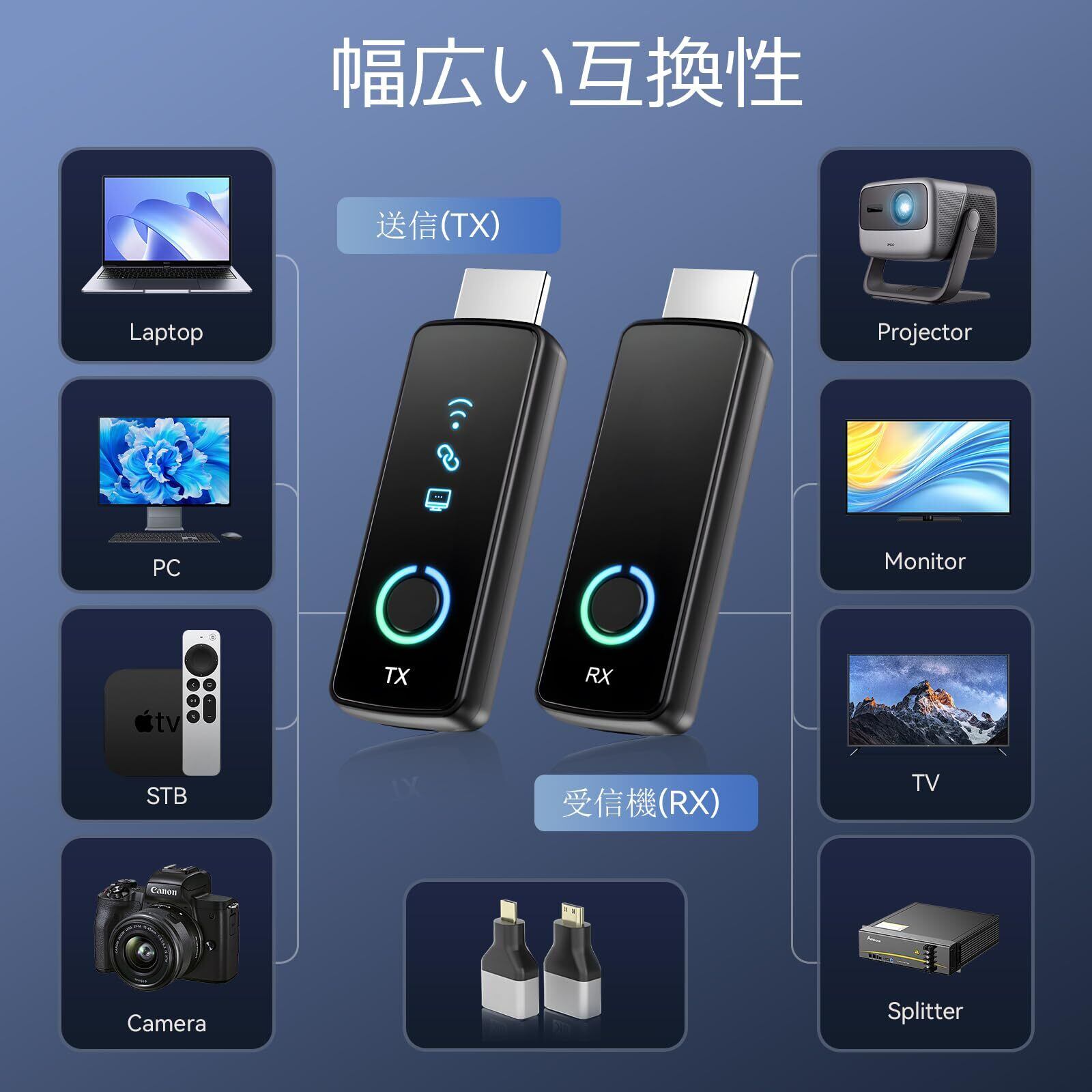 ■【多様なデバイスとの互換性!】この送受信機セットは、PCやMacはもちろん、ゲーム機、カメラ、様々なメディアプレーヤーなど広範なデバイスに対応。どんなシーンでも利用可能で、あなたのエンターテインメント体験を一層充実させます。