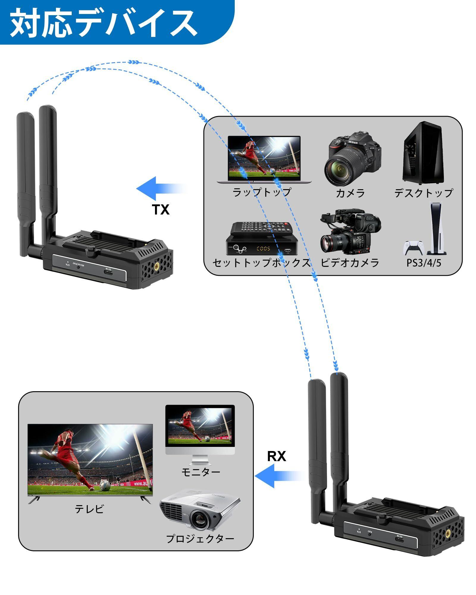 ワイヤレスhdmi 無線 送受信機セット 500m hdmi無線化 1080P HDMIトランスミッター レシーバー プラグアンドプレイ サポート2.4G/5G 適用対象DSLR/ラップトップ/Netflix/YouTubeからテレビ/プロジェクター