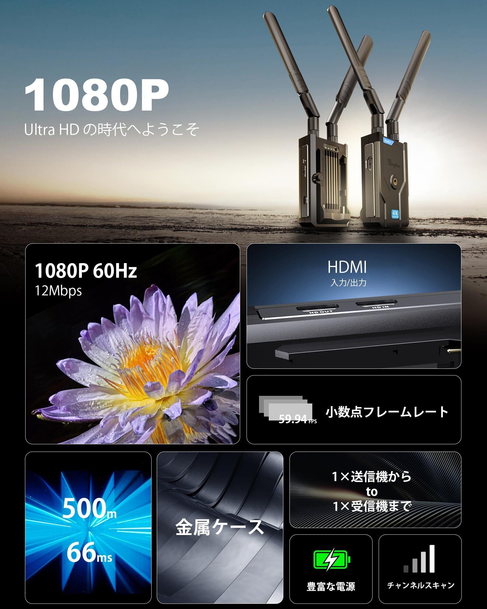 ワイヤレスHDMI無線送受信機セットで、手軽に快適な映像体験をお楽しみください。新しいエンターテインメントの世界が、あなたをお待ちしています!