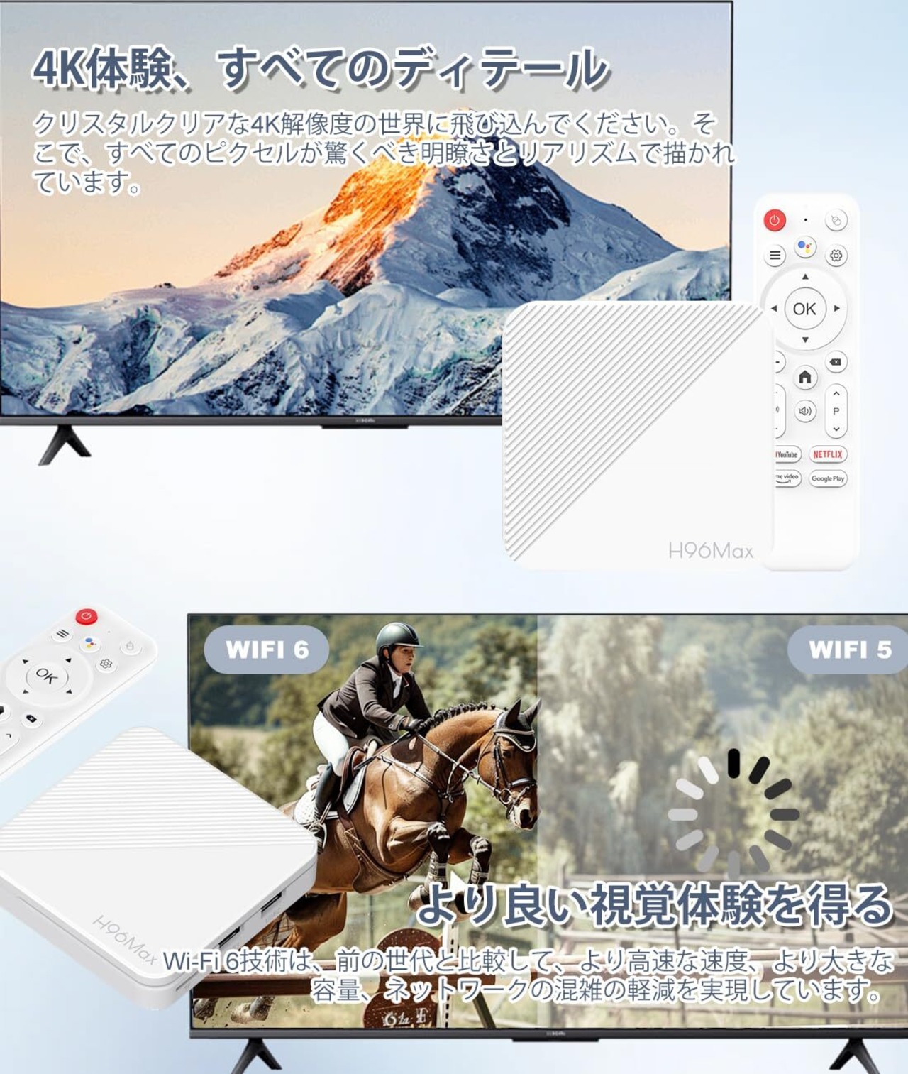メディアプレーヤー TV ボックスと共に、素晴らしいエンターテインメントの世界をお楽しみください。高品質な映像と便利な機能が融合したこのメディアプレーヤーは、あなたの生活をより豊かに彩ります!