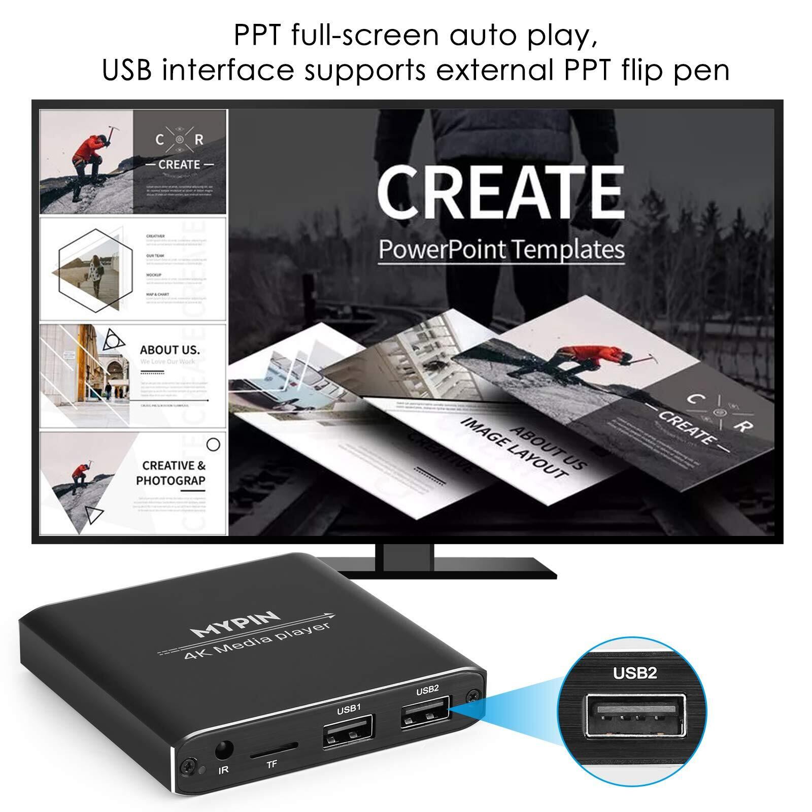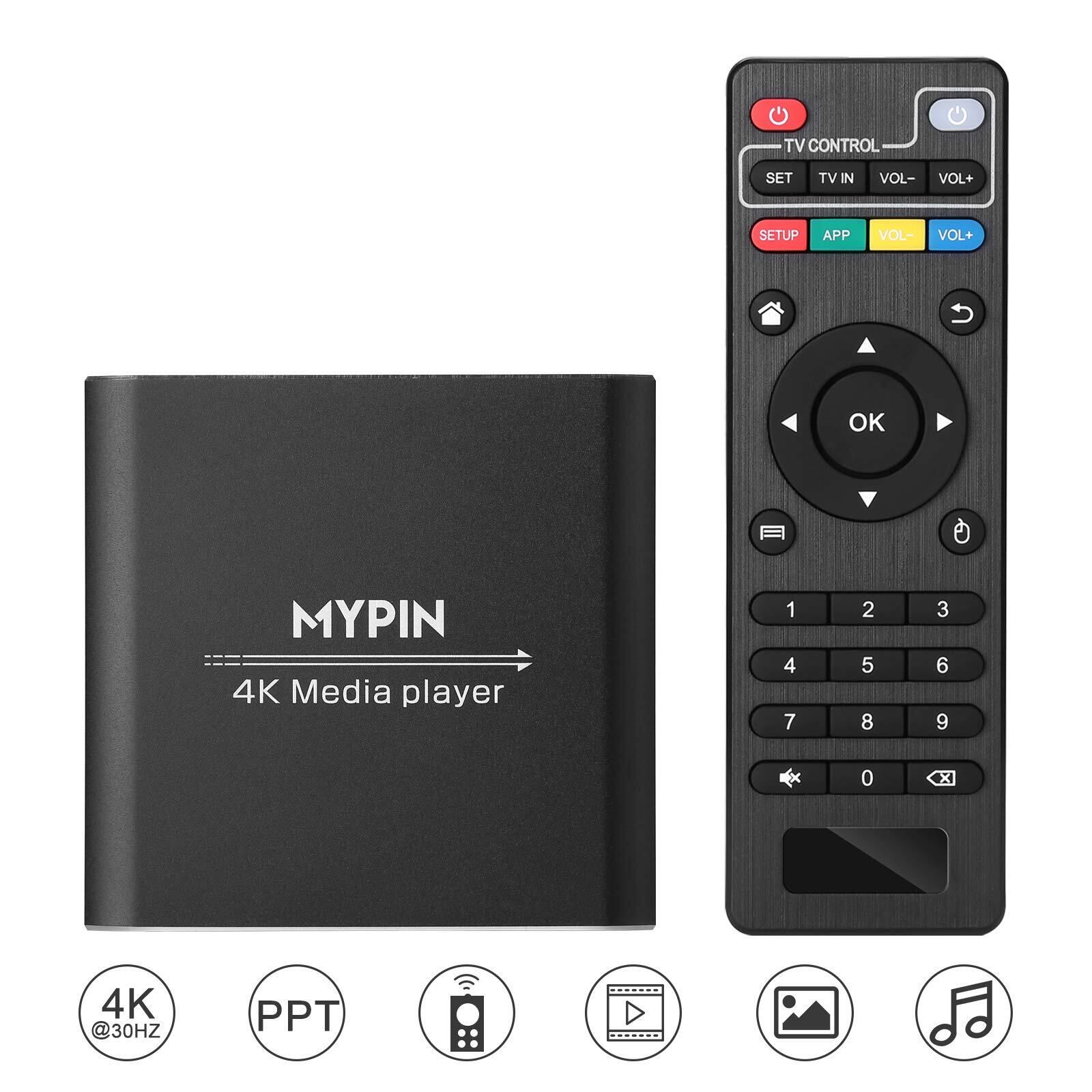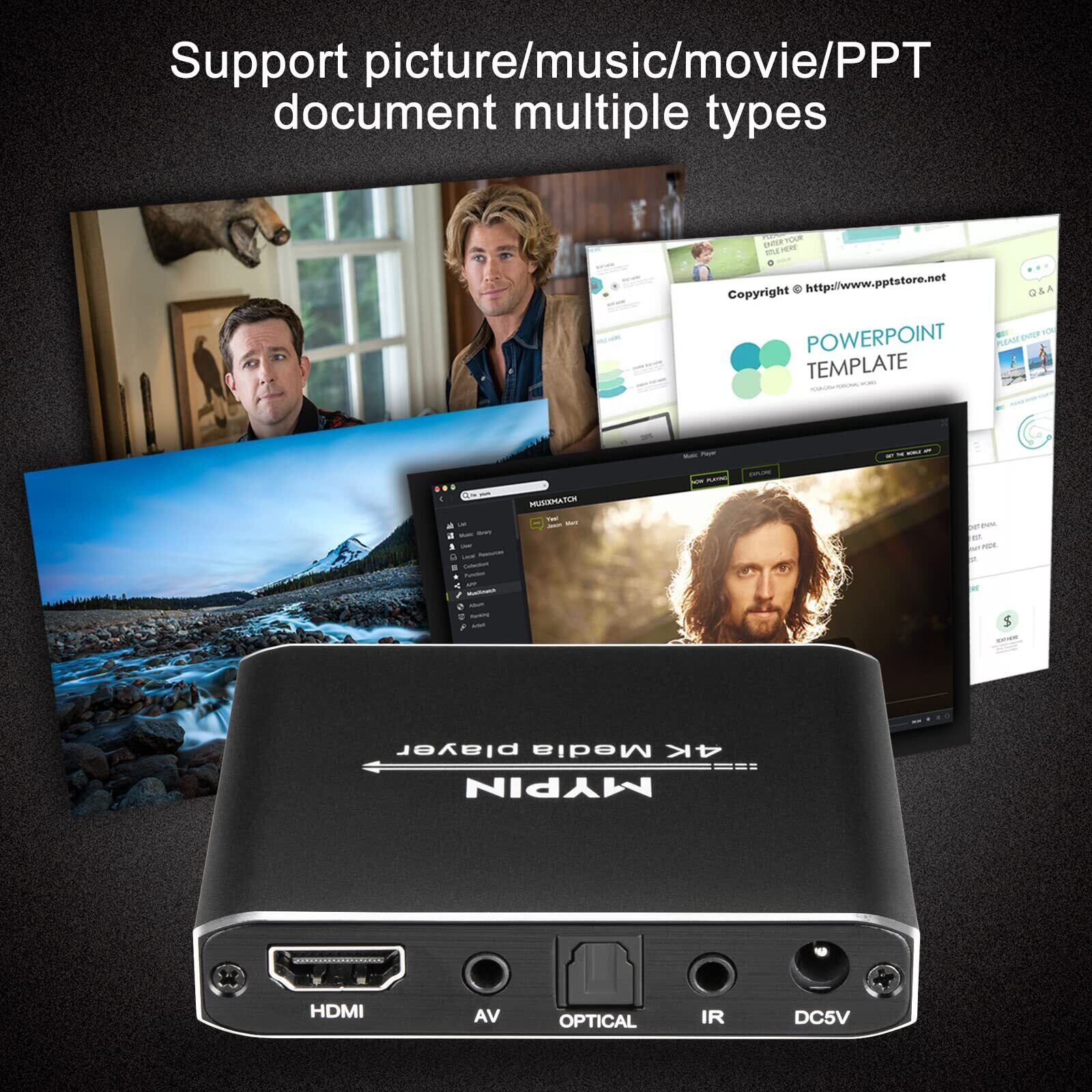 MYPIN リモコン付き4Kメディアプレーヤー、8TB HDD/USBドライブ/TFカード/H.265 MP4 PPT MKV AVI対応 HDMI/AV/光出力とUSBマウス/キーボード-HDMI最大7.1サラウンド対応 (ブラック)