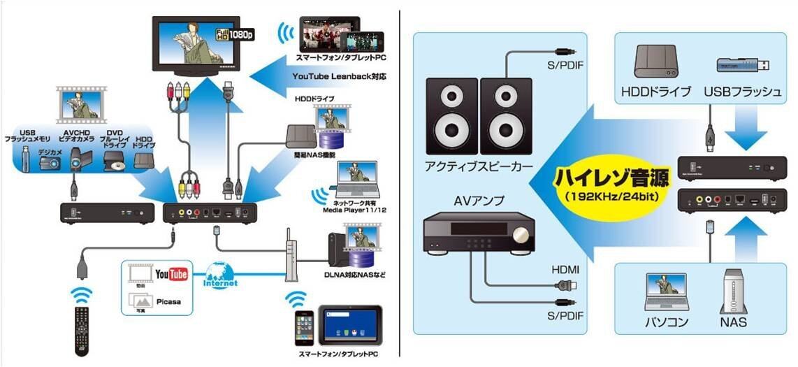 パソコンを使わず大画面のテレビにつないで見ることができるメディアプレーヤーです。