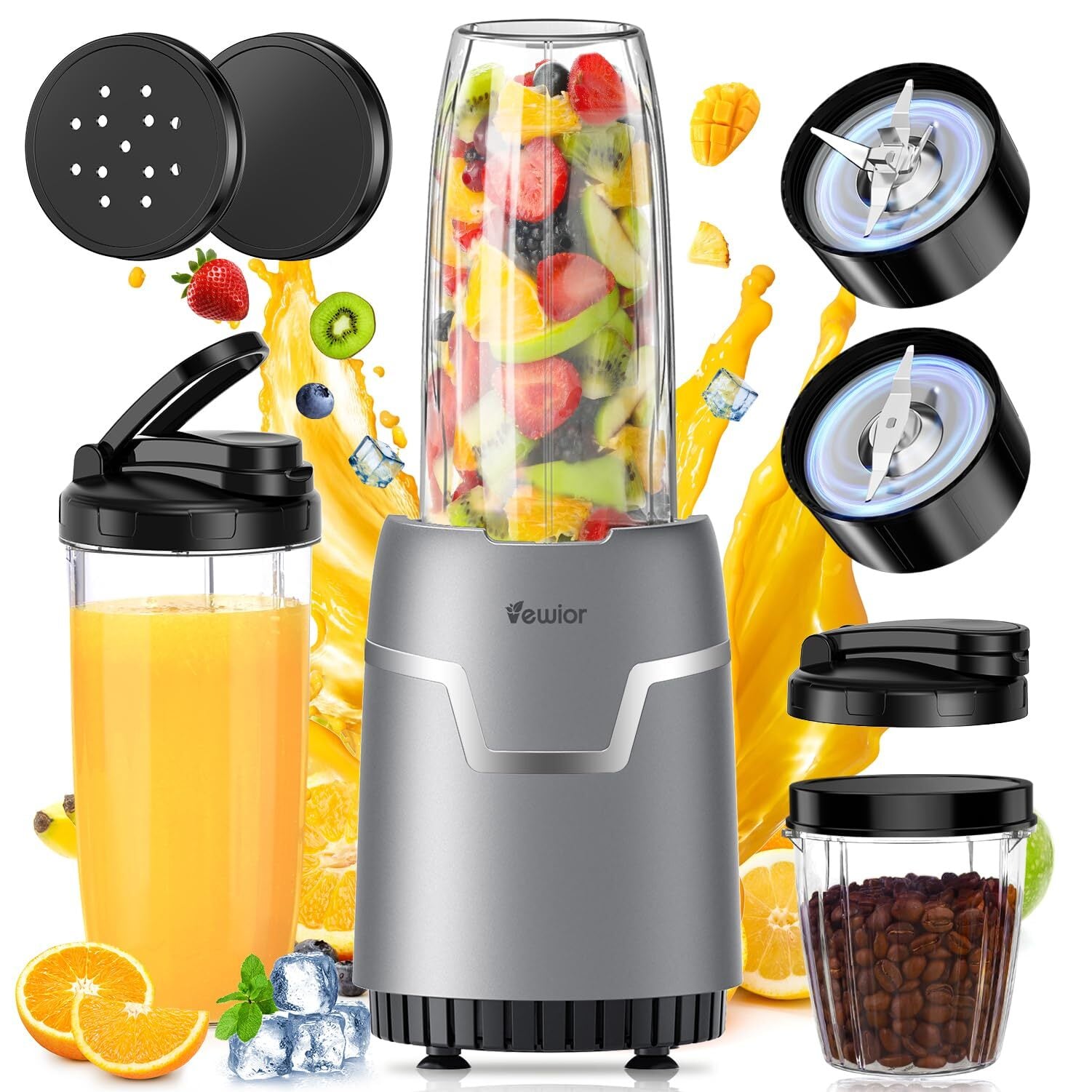 ジューサー ミキサー【2025技術革新版! 1台多役・最大1200Wハイパワー·790ML大容量】VEWIOR ブレンダー 氷も砕ける スムージー/野菜/果物/ジュース/コーヒーミル/離乳食用/ミルクセーキ 790ml*2+300ml*1大容量 6枚刃28000r/min 高速回転 水洗い可能 過熱保護 ギフト キッチン/アウトドア/旅行/出張/ジム/オフィス(11点)