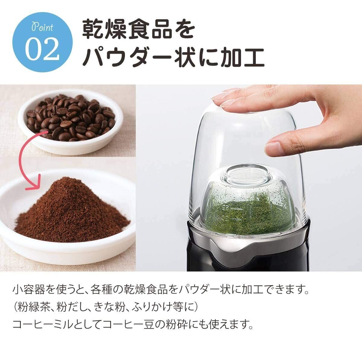 乾燥食品をパウダー状に加工できます:小容器を使うと、各種の乾燥食品をパウダー状に加工できます。(粉緑茶、粉だし、きな粉、ふりかけ等に)