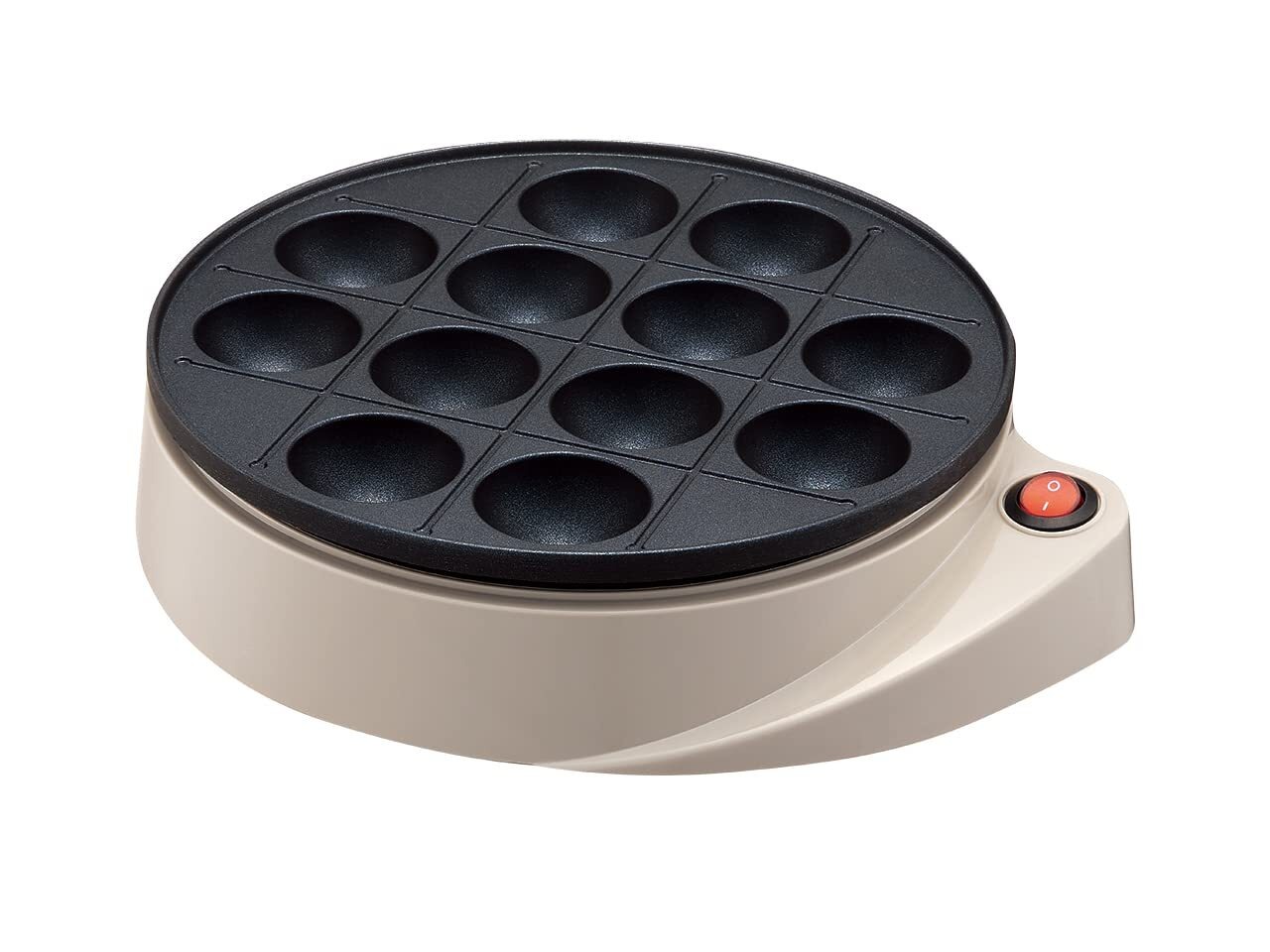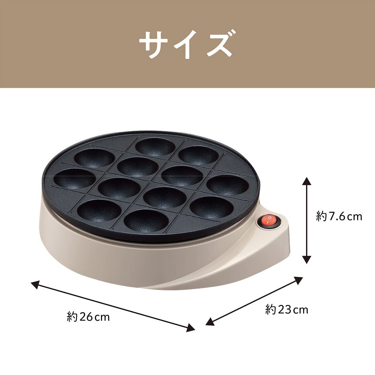コイズミ(Koizumi) モノクローム たこ焼き器 たこ焼きメーカー 12穴 溝付きプレート フッ素コーティング お手入れ 簡単 卓上 コンパクト ベージュ KTM-0700/C