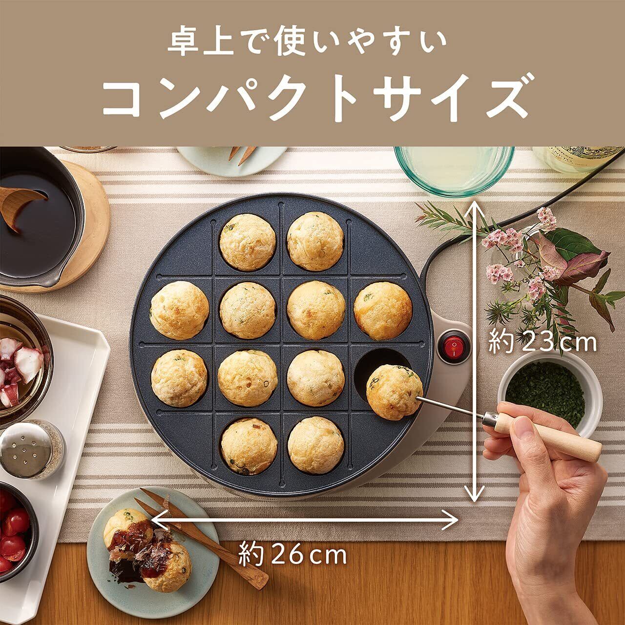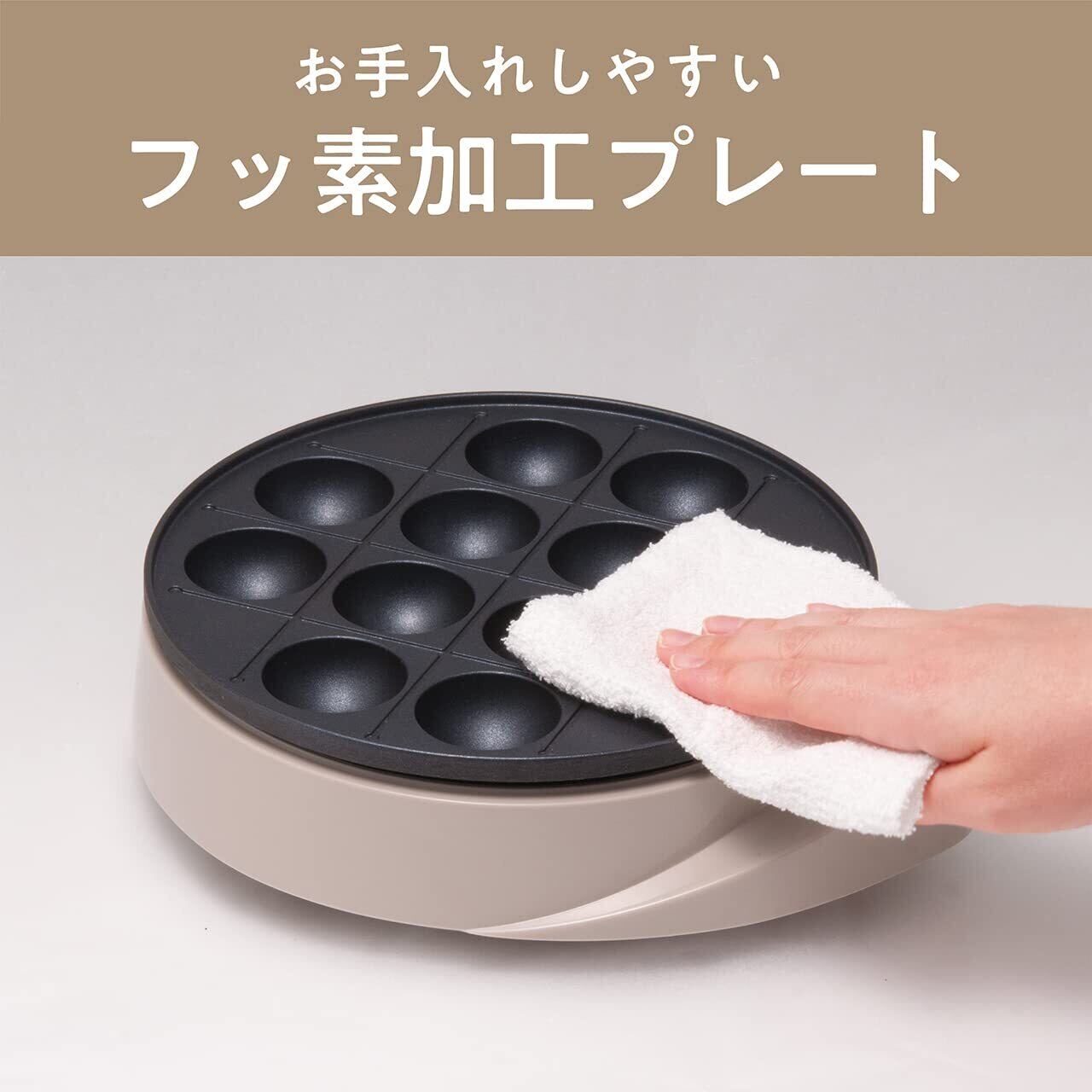 【数量限定】コイズミ(Koizumi) モノクローム たこ焼き器 たこ焼きメーカー 12穴 溝付きプレート フッ素コーティング お手入れ 簡単 卓上 コンパクト ベージュ KTM-0700/C