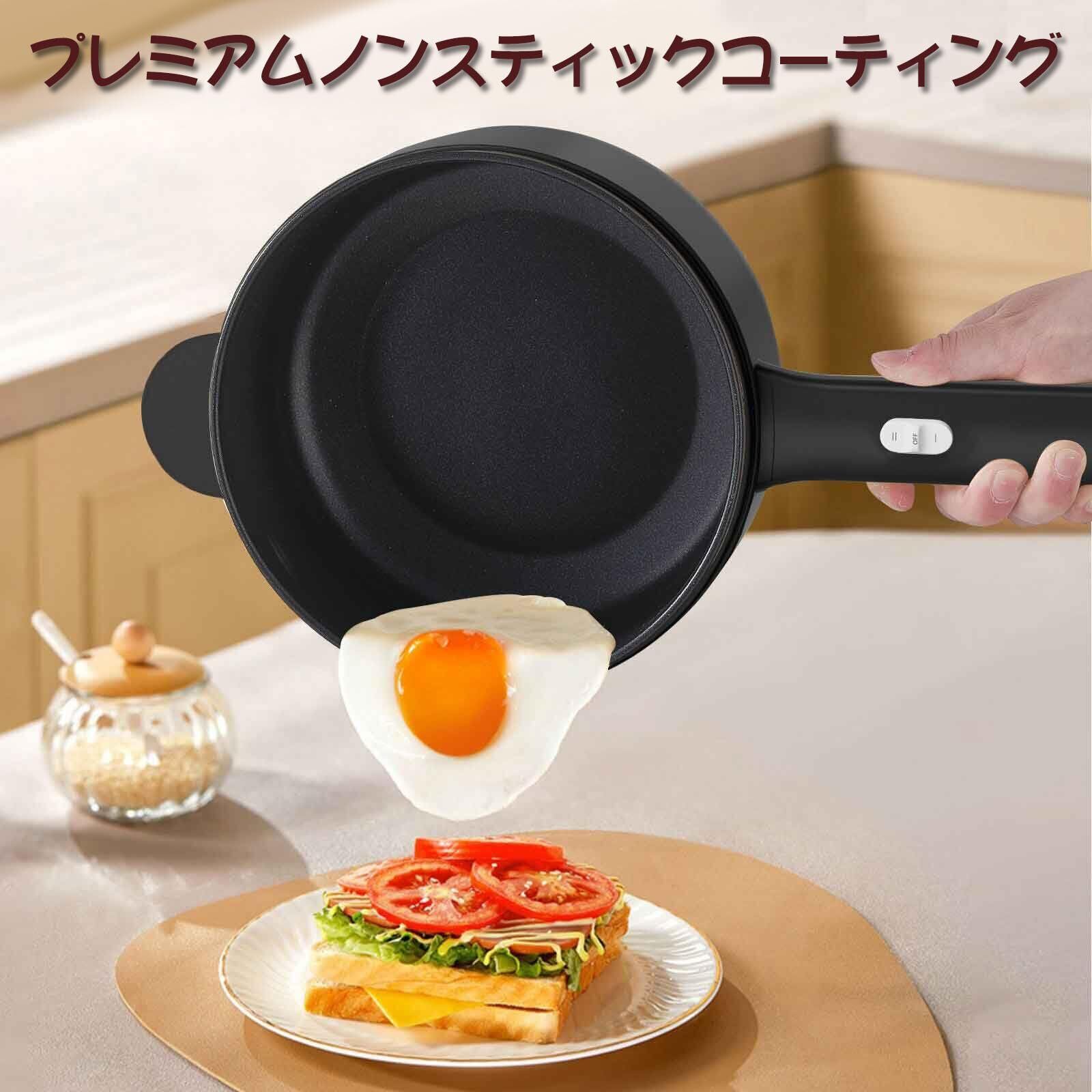 DEZIN 一人用電気鍋(電気調理鍋、グリル鍋) 2L 片手操作できる電気鍋で、2 人用、簡単洗浄の無粘着コーティング付き、2 段の火力調節機能搭載。一人暮らしに最適で、車や野外、旅行にも携帯しやすい。ラーメン、パスタ、天ぷら、揚げ物を作るのに便利なベストパートナー