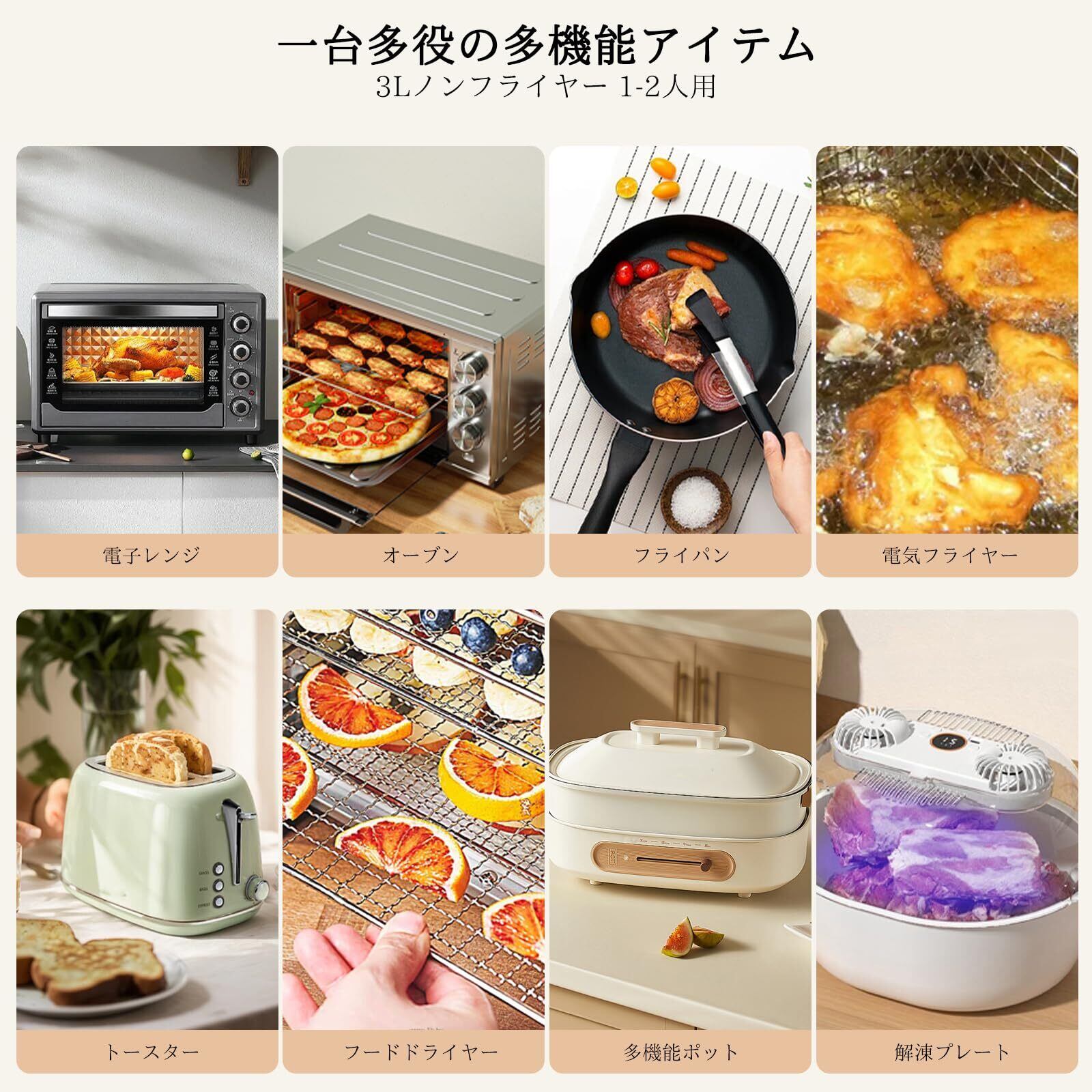 【1台7役!時短&プロ級クオリティ】この1台で揚げる・焼く・ロースト・ベイク・温め直しなど、7つの人気メニューが楽しめる さつまいもからエッグタルトまで、ボタンひとつで本格仕様!忙しい日でも数分で完成、特別な日もおもてなしもこれ一台でOK 焼き魚・焼肉・鶏の羽根まで、メニューの幅が広がること間違いなし!