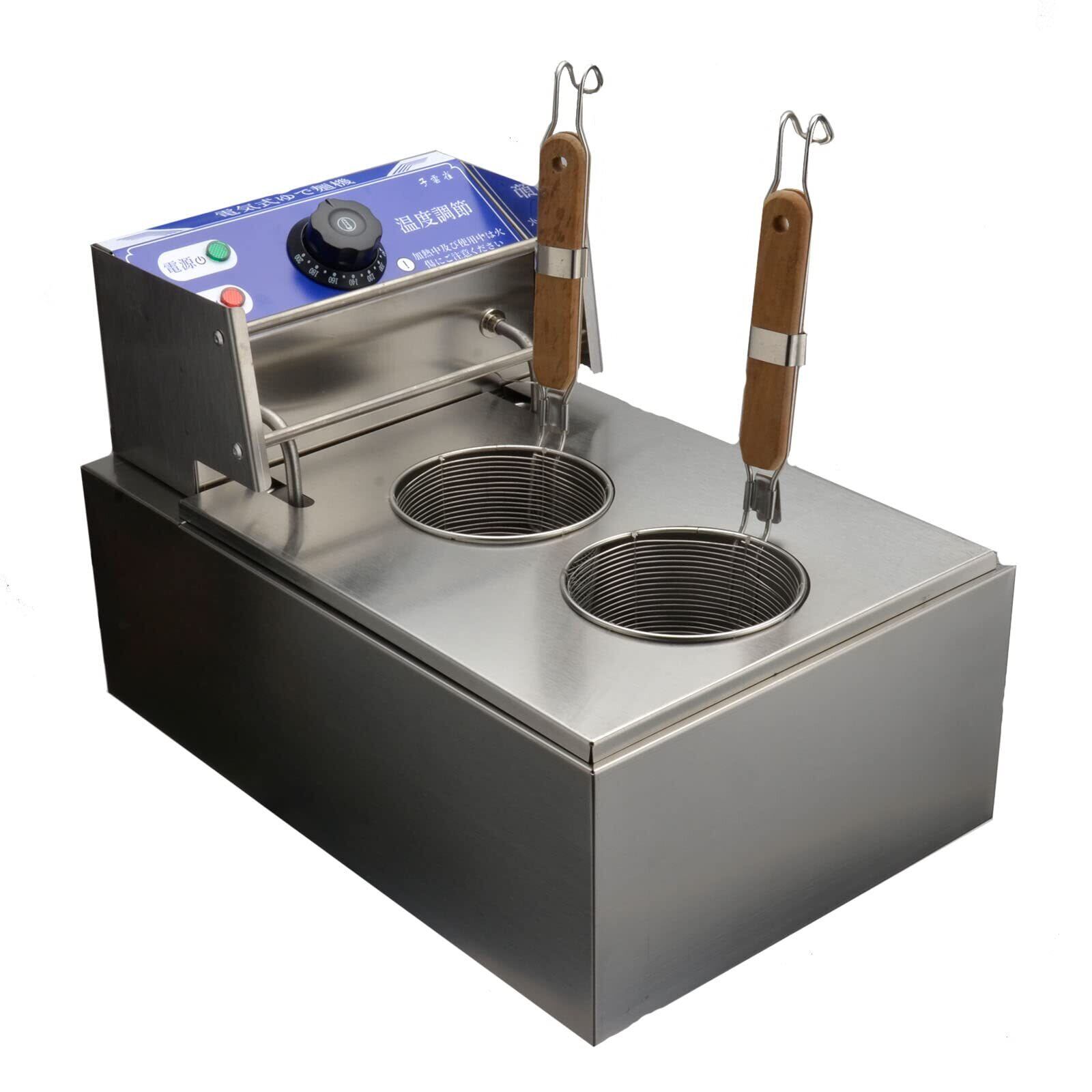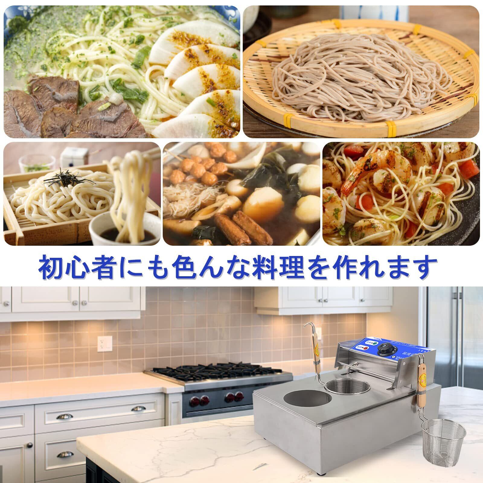 子雲雀 電気式麺茹で器 ステンレス鋼製 空焚き防止装置内蔵 保温機能あり 0℃-200℃調整可能 1100W 日本語表記 省エネ 卓上タイプ 日本語説明書付き テボ2個付き 業務用 家庭用 うどん そば ラーメン