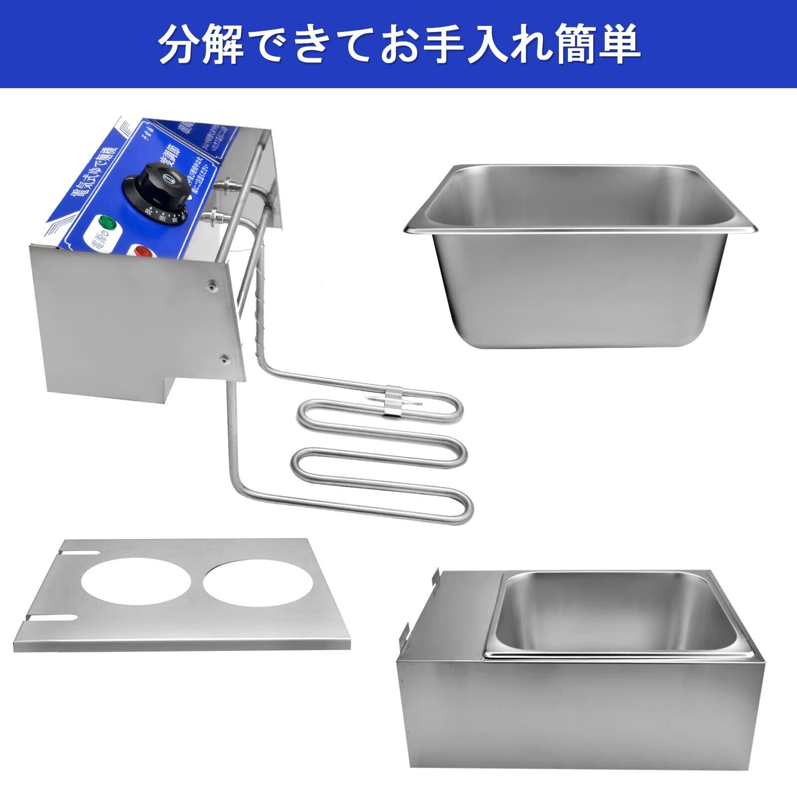 【1100W高熱効率だから早い、旨い!】:ゆで槽内に直接1100W出力のヒーターを配置し、高熱効率を実現しました。 沸騰までの立ち上がりが早く、一気にゆで上げるので麺の旨さを損なわず、 しかもランニングコストを抑えます。 60℃から200℃まで調整可能なので、 おでん/うどん/ギョーザ/煮物/しゃぶしゃぶ/麺/粉/ワンタン/汁物/マーラータンなどだけではなく、 幅広い食材を対応できます。高温調理だけではなく低温調理も大丈夫です。