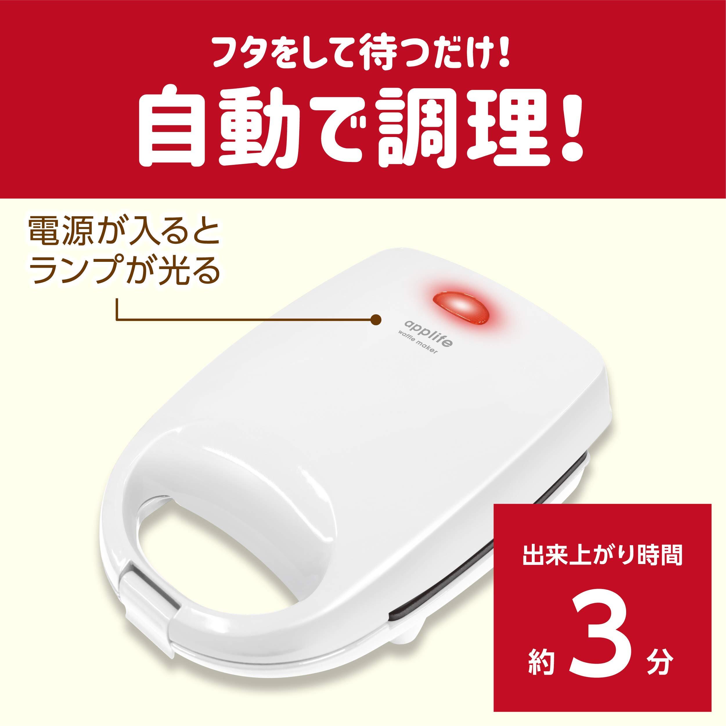 applife ワッフルメーカー 白 | ワッフル モッフル 簡単 時短 お菓子作り 電気式 焼きあがり3分 スピード調理 ホームパーティ イベント 自家製 おいしい 自動調理 フッ素加工