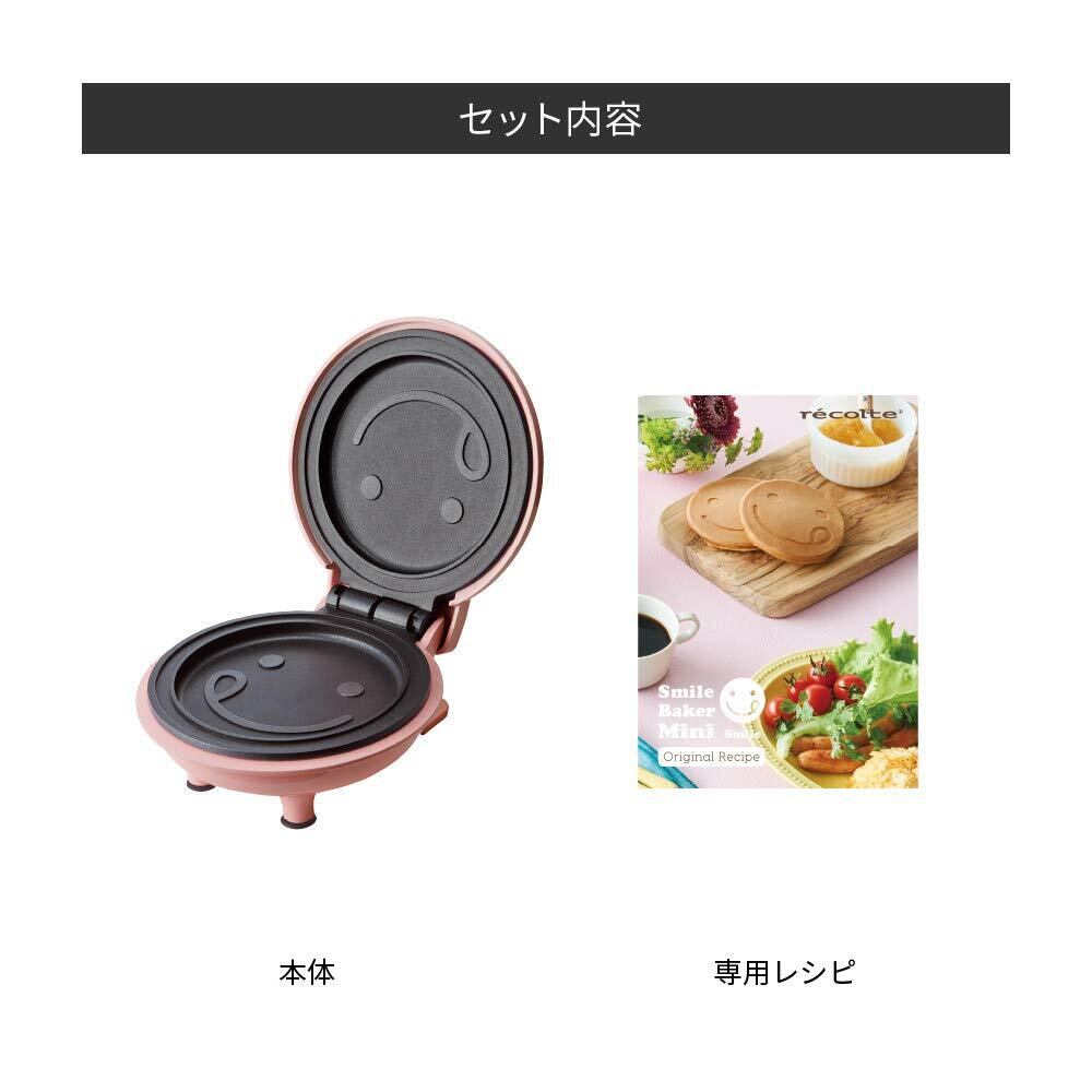 recolte レコルト スマイルベイカーミニ ホットケーキメーカー パンケーキメーカー 家庭用 かわいい 電気 コンパクト プレート クローバー スマイル パンケーキ 約3分で完成 レシピ付き RSM-2 スマイルピンク)