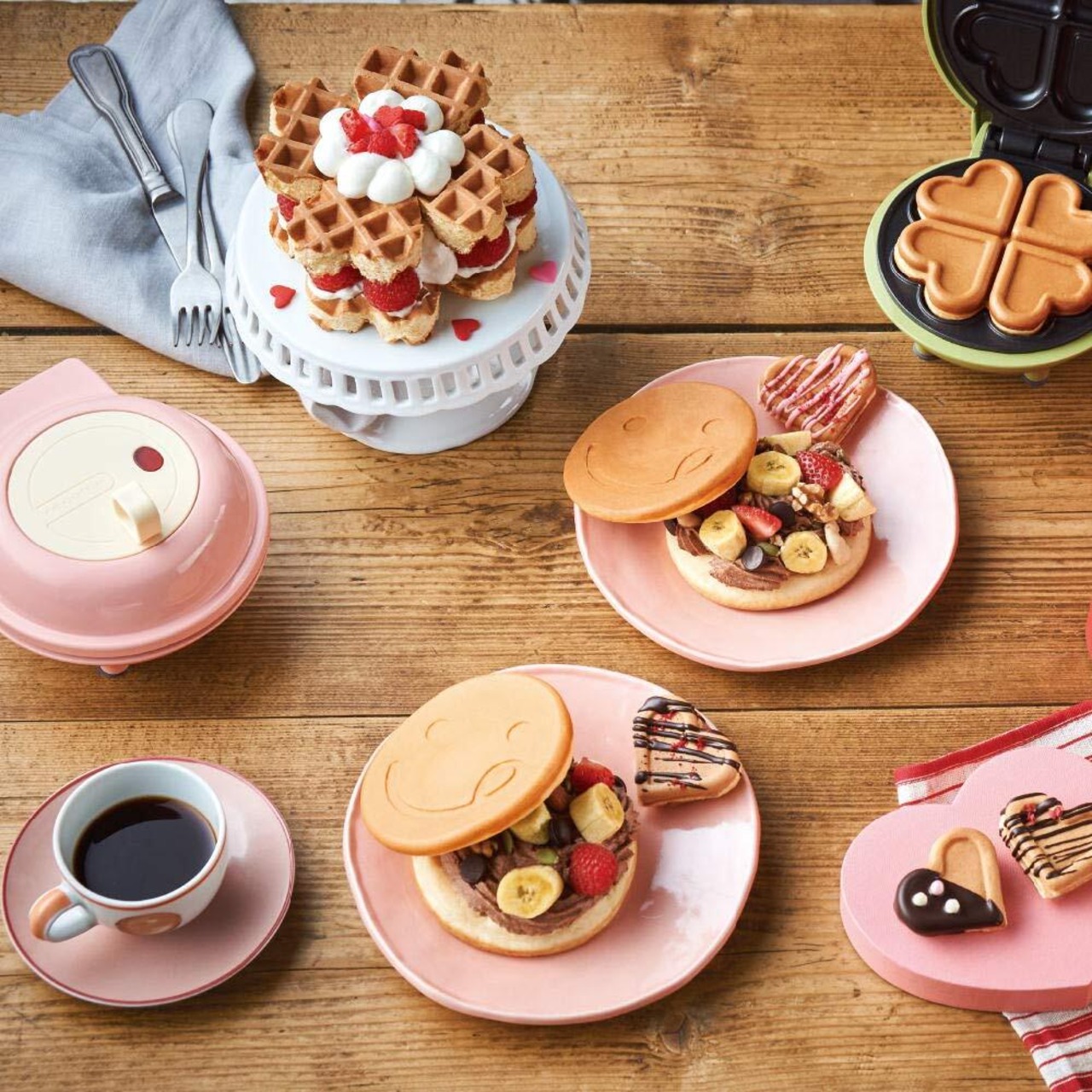 【焼き上がりがキュート!】それぞれとってもキュートなミニサイズのパンケーキが焼けるので、子どもから大人まで誰もがハッピーな気分に!