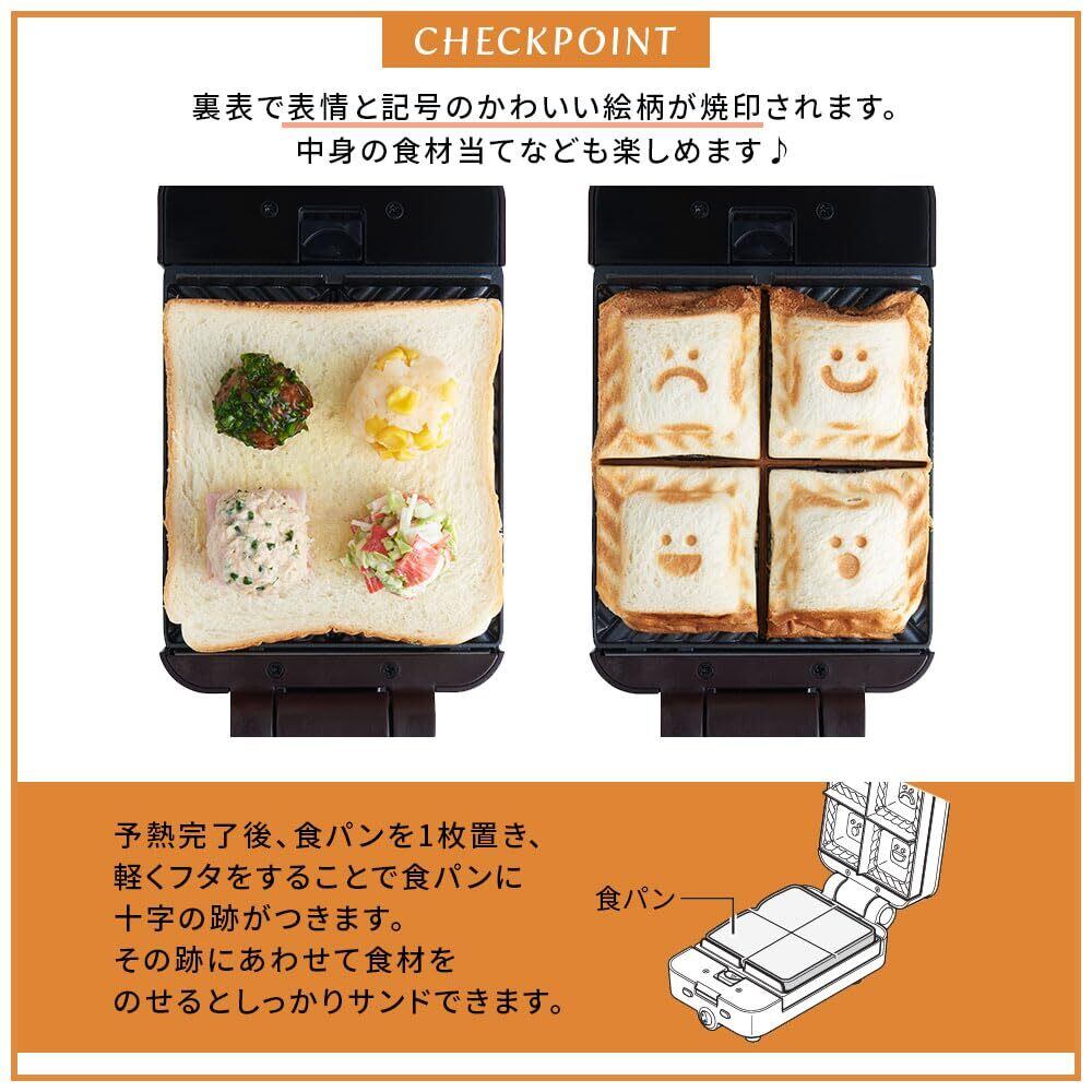 【作り方もカンタン!見た目もかわいい】 パンを置いて好きな食材を挟むだけなので、使い方もシンプル&カンタン! かわいらしい絵柄が焼印されて、中身の食材当ても楽しめます