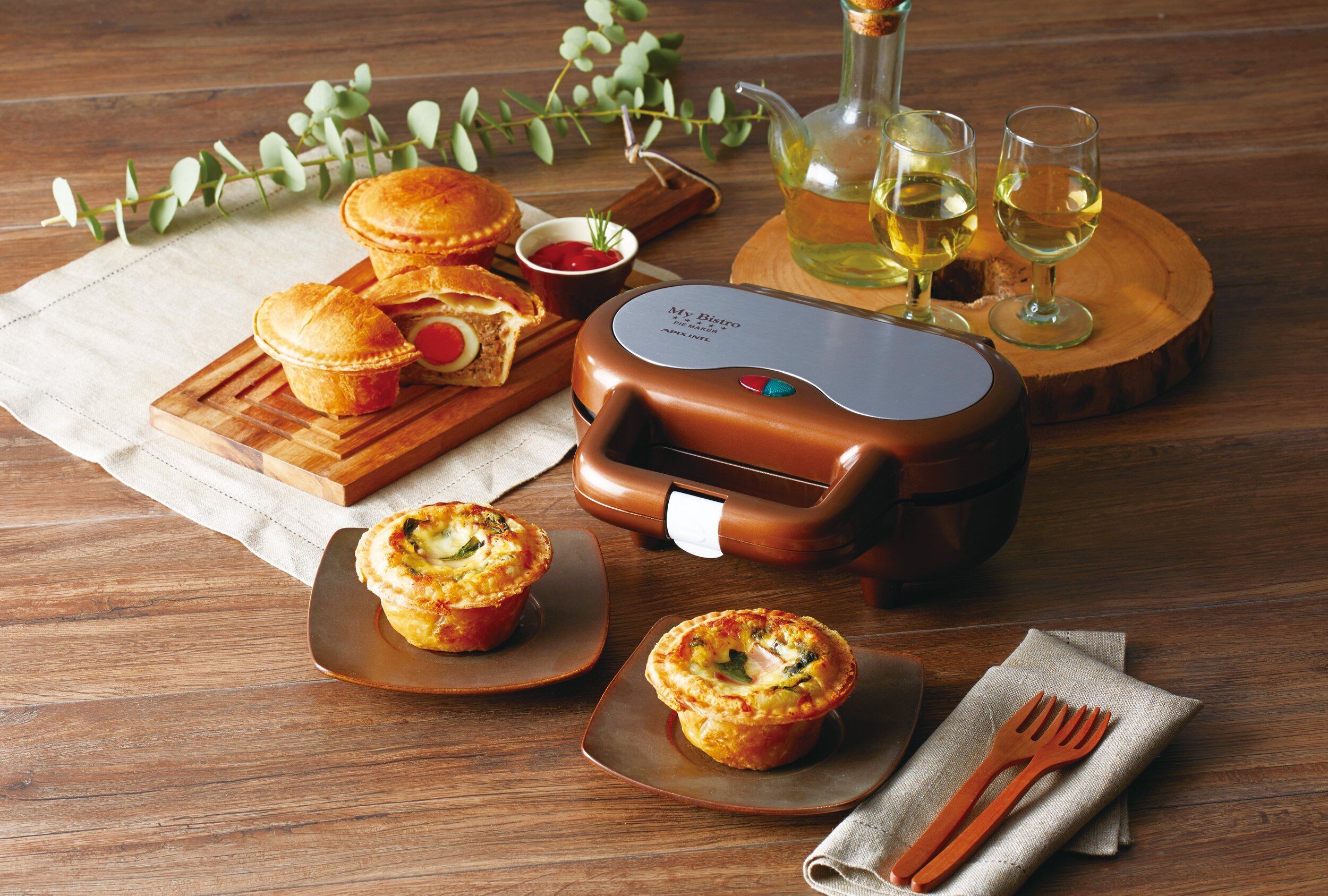 深さ約4cmのパイ型で具材がたくさん入るからボリューム満点! 専用の抜き型と押し型も付属しているのでご自宅で簡単に本格的なパイが作れる