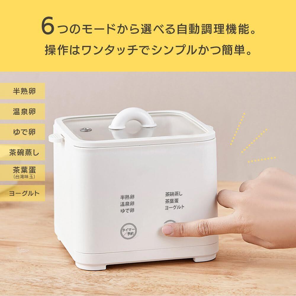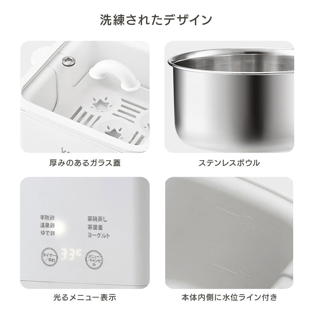 ■【多機能なゆで卵メーカーが登場!】nikomeのゆで卵メーカーは、蒸し器としても活用できる優れたアイテムです。ゆで卵、温泉卵、半熟卵はもちろん、茶碗蒸しや自家製ヨーグルトも手軽に作れて、忙しい毎日をしっかりサポートします。