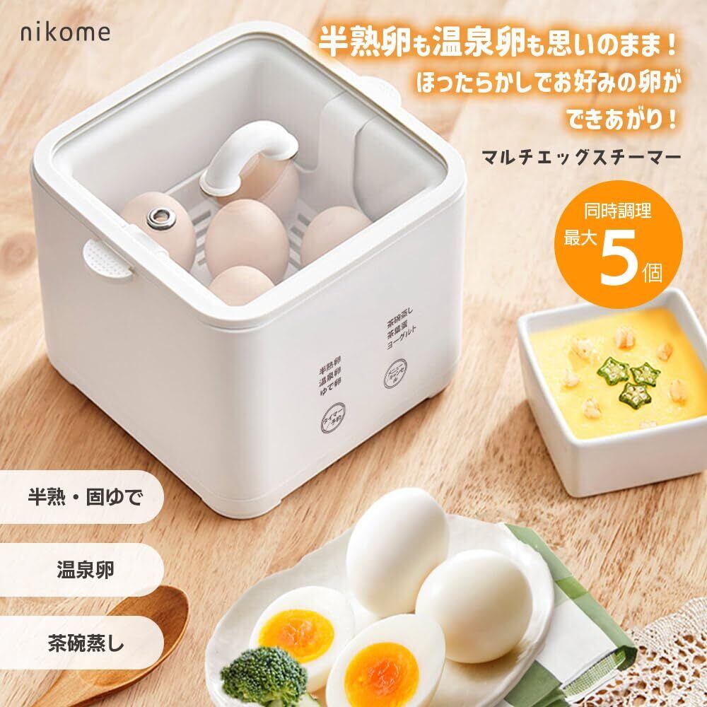 【茶碗蒸し ヨーグルトも作れる】nikome ゆで卵メーカー 卵 タマゴ ゆで卵 温泉卵 半熟たまご 蒸し器 5個 全自動料理 マルチエッグスチーマー NKM-MES01