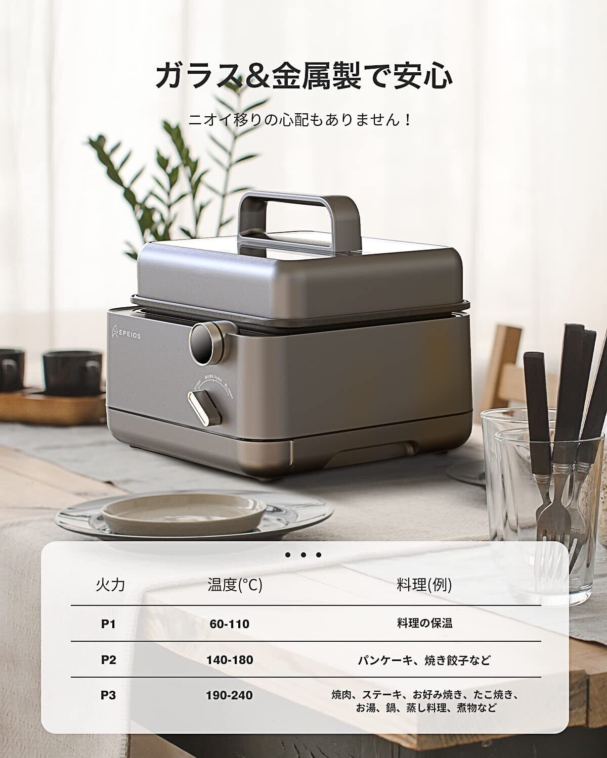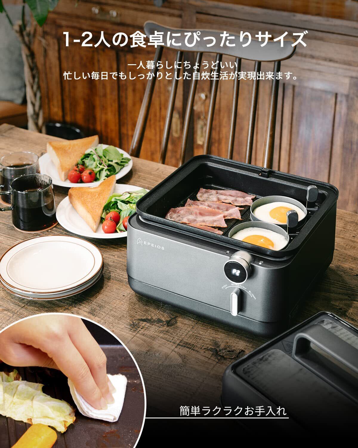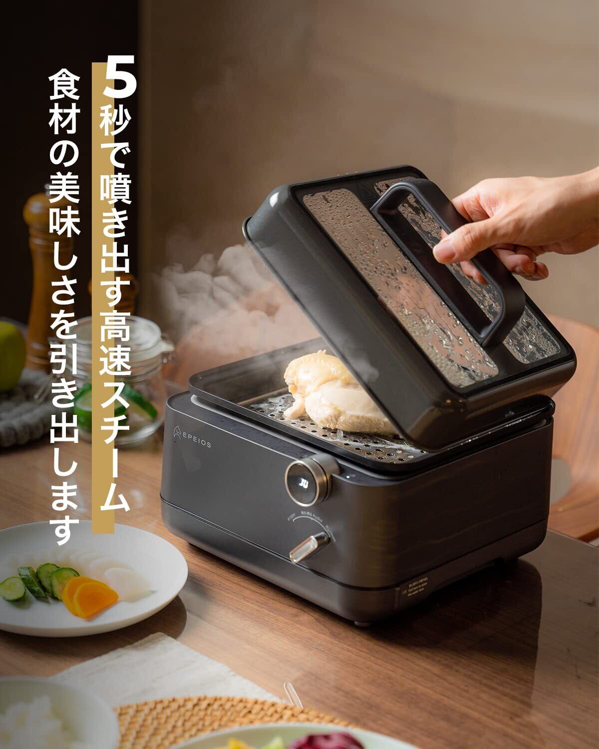 【特価セール】【モダンリビング8月号掲載】エペイオス(Epeios) 多機能電気蒸し器 一台三役 マルチスチームホットプレー 蒸し調理器 5秒で高速スチーム 水分と栄養を瞬時に閉じ込める 蒸す/焼く/煮る 温度調節 時間調節 1人/2人用 プレート2種 簡単お手入れ ふた付き着脱式 ヘルシー料理 操作簡単 洗いやすい 引越し 結婚祝い クリスマス ギフト プレゼント