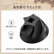 ■【安心・安全な自動停止機能!】セラミック刃は、豆を均一に挽くことができる上に、自動停止機能も搭載していますので、安全面に配慮しつつスムーズに使用できます。忙しい朝でも安心してご利用いただけます。