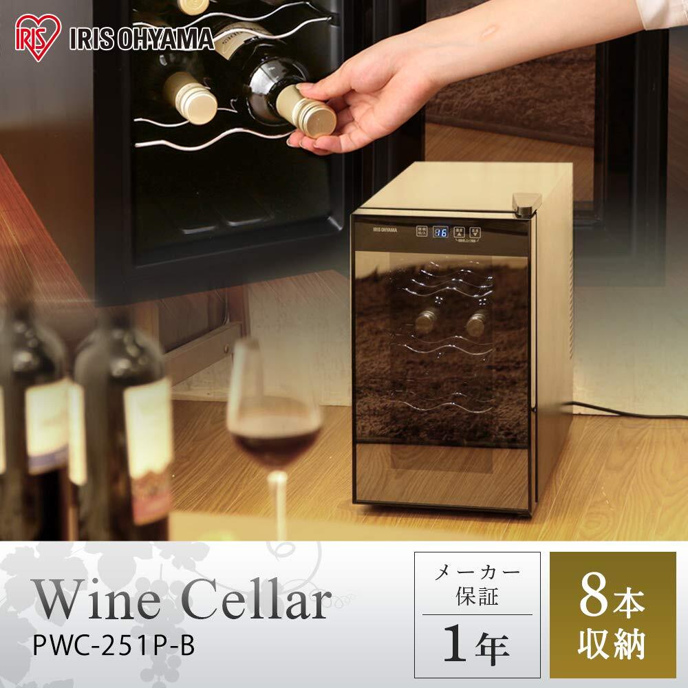 【特価セール】アイリスオーヤマ ワインセラー 8本収納 25L 8~18℃ ペルチェ式 庫内LED 小型 PWC-251P-B