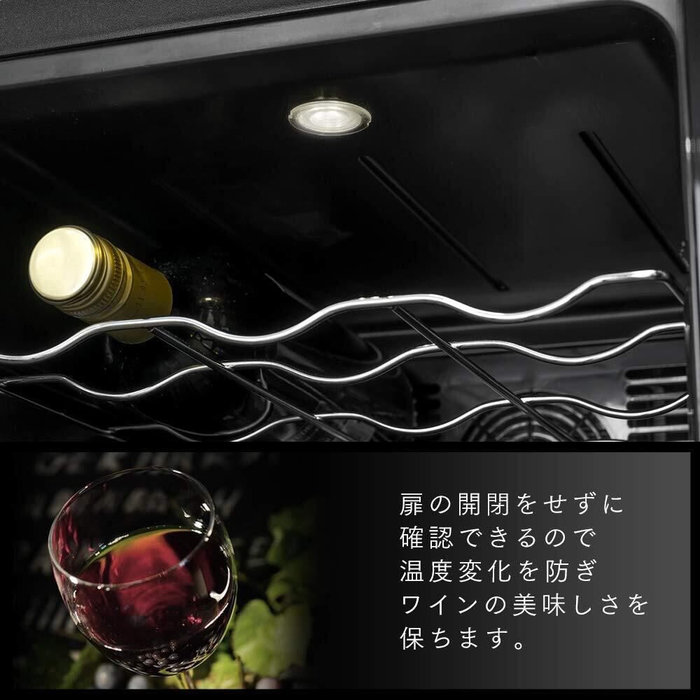 ■【使いやすいデザイン!】温度調節は簡単で、直感的な操作が可能。庫内のLEDライトで上部のボトルも明るく照らし、手間なくお好きなワインを見つけることができます。