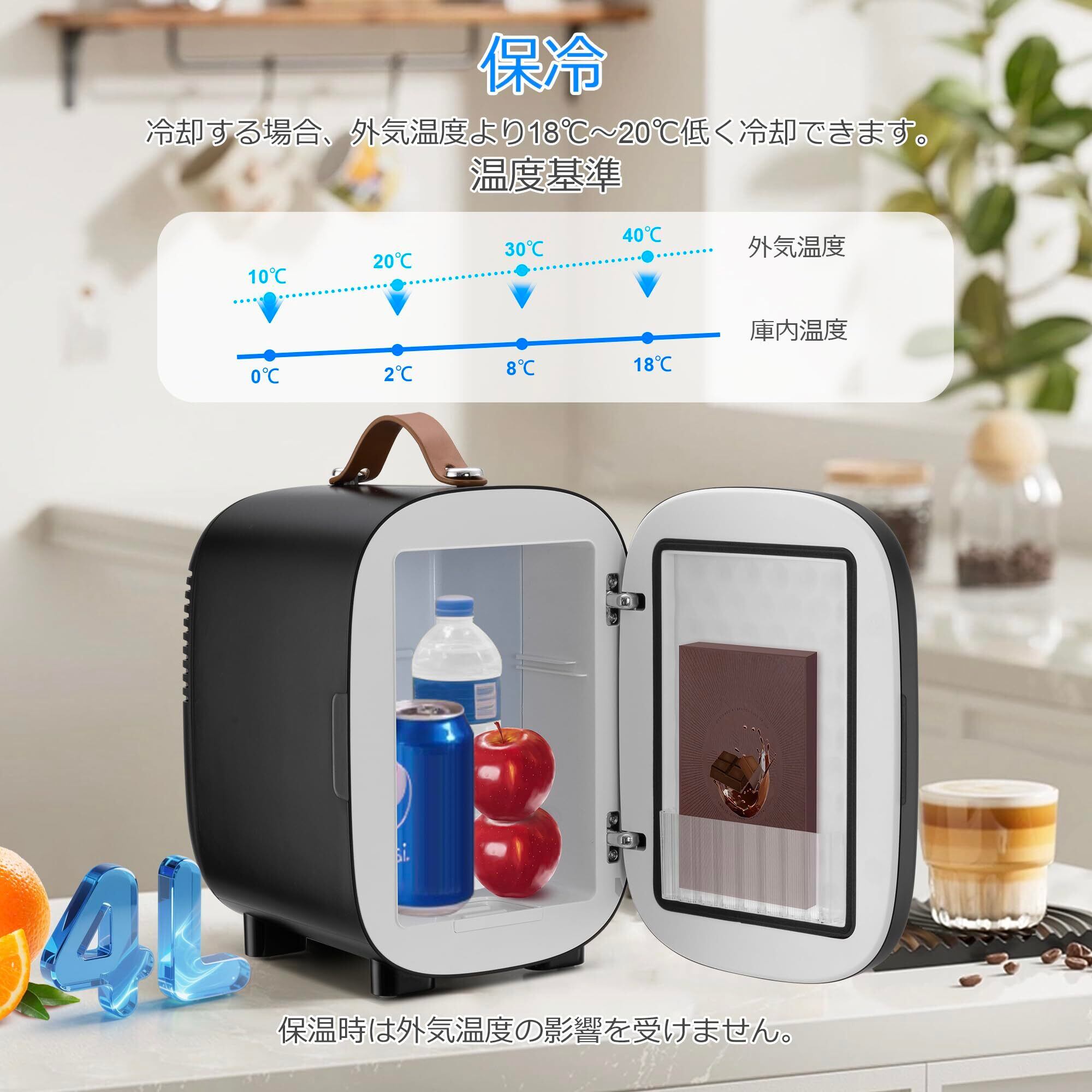 Enventor 冷蔵庫 小型 冷温庫 4L 保冷保温用 極静音PSE認証 ミニ冷蔵庫 車載 冷蔵 保温 一人暮らし 12V 車中泊 キャンプ アウトドア 職場 卓上 寝室 家庭用 省エネ AC/DC給電 持ち運び便利 スキンケア(ブラック)