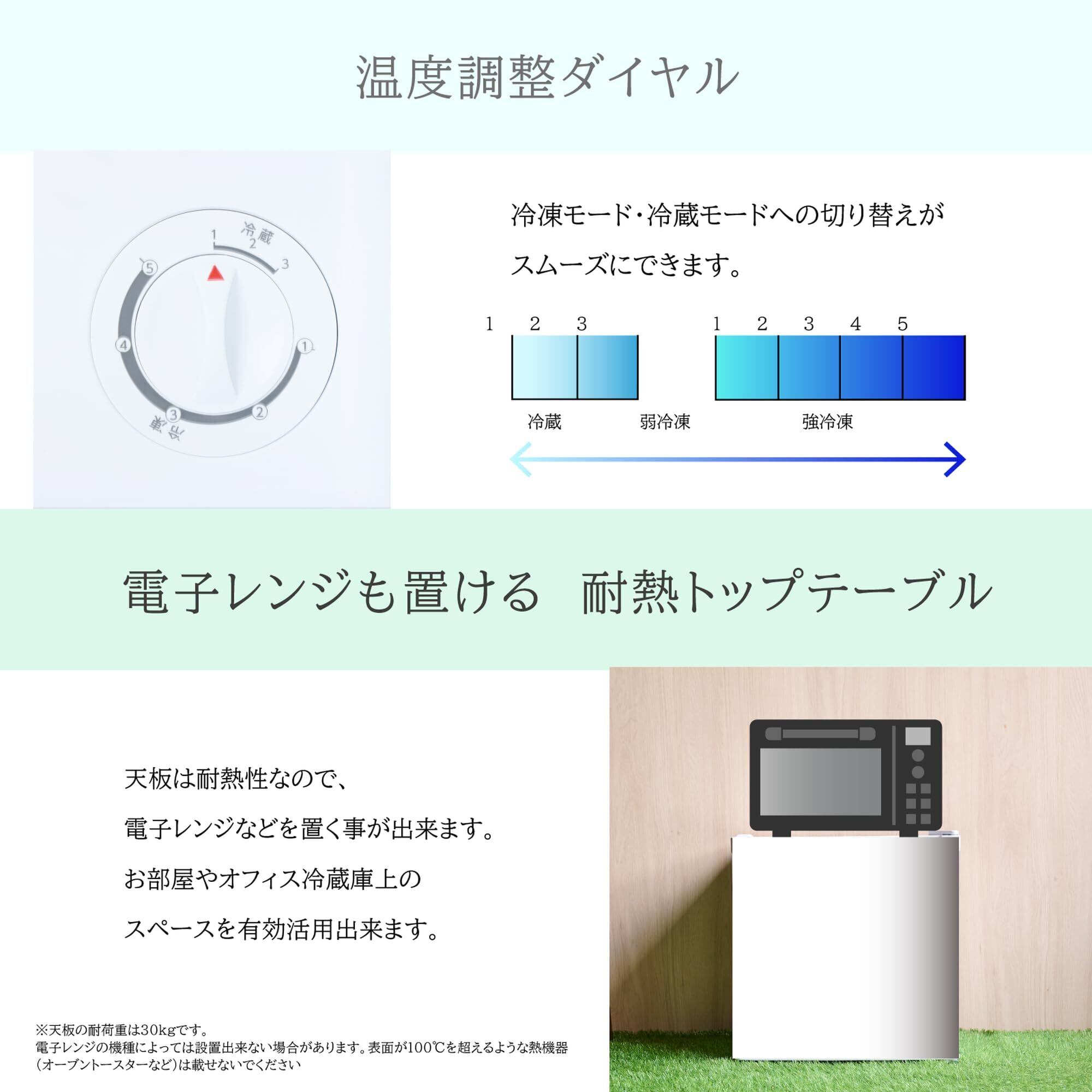 温度調節ダイヤル搭載で庫内温度を自由に調整。冷蔵2段階、冷凍4段階の計6段階の変更が可能。