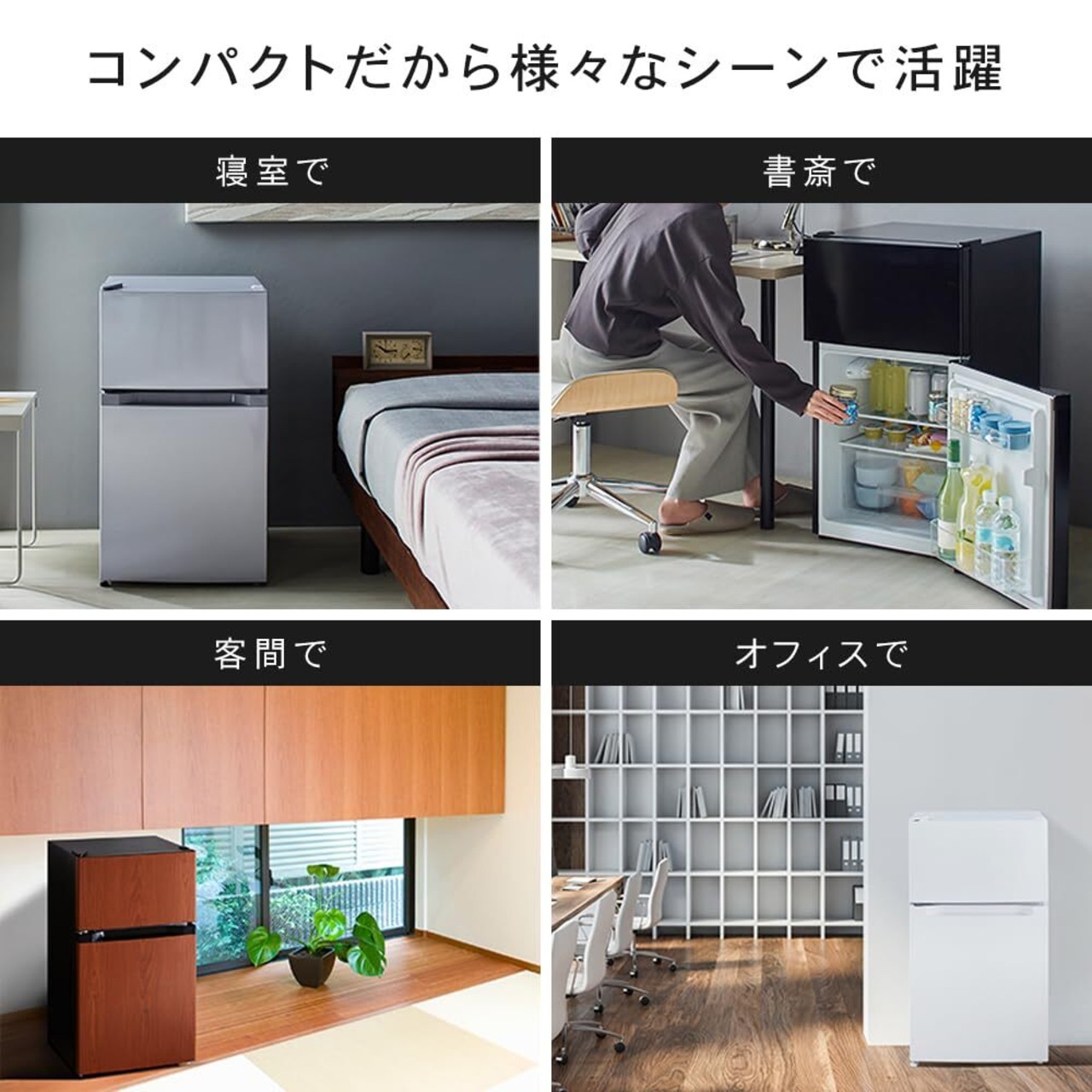 自由度が高い、2ドアタイプのコンパクト冷蔵庫です。<br>ライフスタイルやシーンに合わせてお使い頂けます。<br><br>◆コンパクトでも容量たっぷり<br>◆庫内灯・温度調節7段階<br>◆お部屋をおしゃれに彩るスタイリッシュなデザイン<br>◆選べる左右ドア開き対応