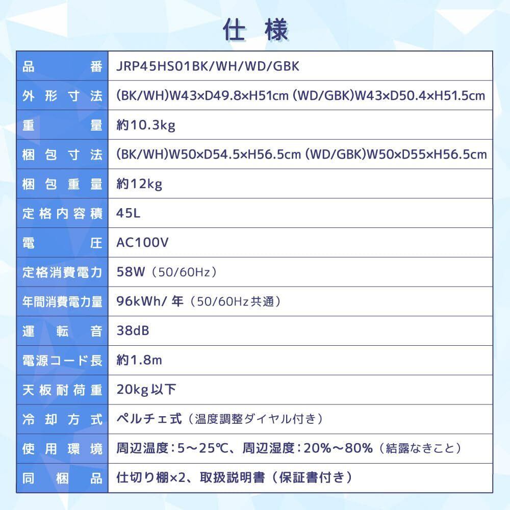 【特価セール】MAXZEN 冷蔵庫 小型 ペルチェ式 霜取り不要 静音 45L 1ドア ひとり暮らし 低振動 一人暮らし コンパクト ミニ冷蔵庫 右開き オフィス 寝室 ウッド 木目 JRP45HS01WD マクスゼン