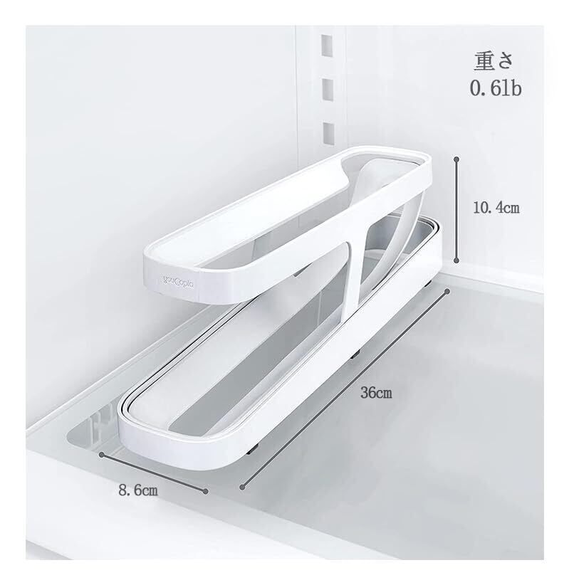 材料pp、8.2*36*10cm。2段 自動 ローリングエッグ ホル。耐久性に優れ、臭気のない環境、スライドのデザイン、物品は冷蔵室で新鮮で、また拾うことは非常に簡単です、使いやすい。
