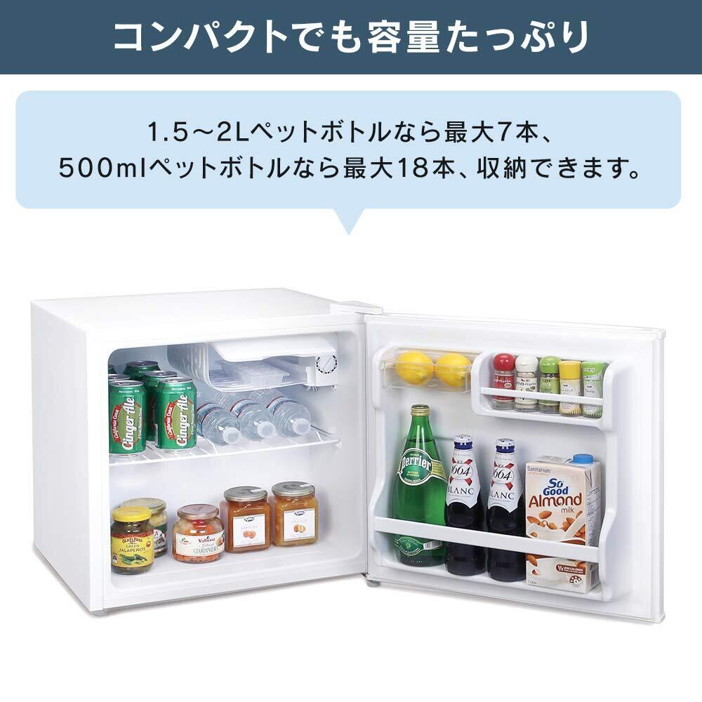 ■【使い勝手を考えた機能的なデザイン】1ドアタイプの設計により、開閉もスムーズで、冷蔵室内の食材に簡単にアクセスできます。また、整理整頓しやすい棚が付いており、収納力も抜群です!