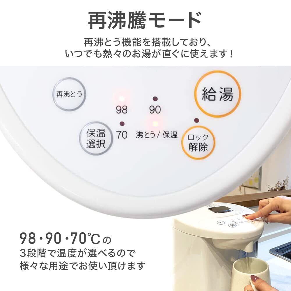 【人気商品】iimono117 電気ポット 保温機能付き [ 2.2L / 3.2L / 5L ] 片手給湯可能 3段階保温 小型 ポット ロックスイッチ マグネットプラグ フッ素コート加工 再沸騰 省エネ 保温 シンプル 湯沸かし 湯沸し器 (ホワイト, 3.2L)
