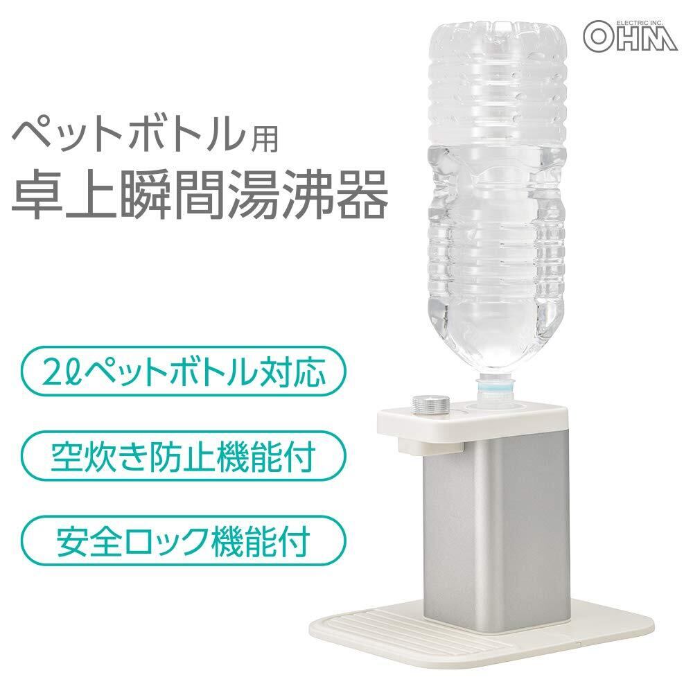 ■【手軽にお湯が沸かせる瞬間湯沸器】オーム電機の瞬間湯沸器は、ペットボトルをそのまま使用できる便利な設計です。卓上で手軽に温かいお湯を供給でき、急な来客時や食事準備に役立ちます。