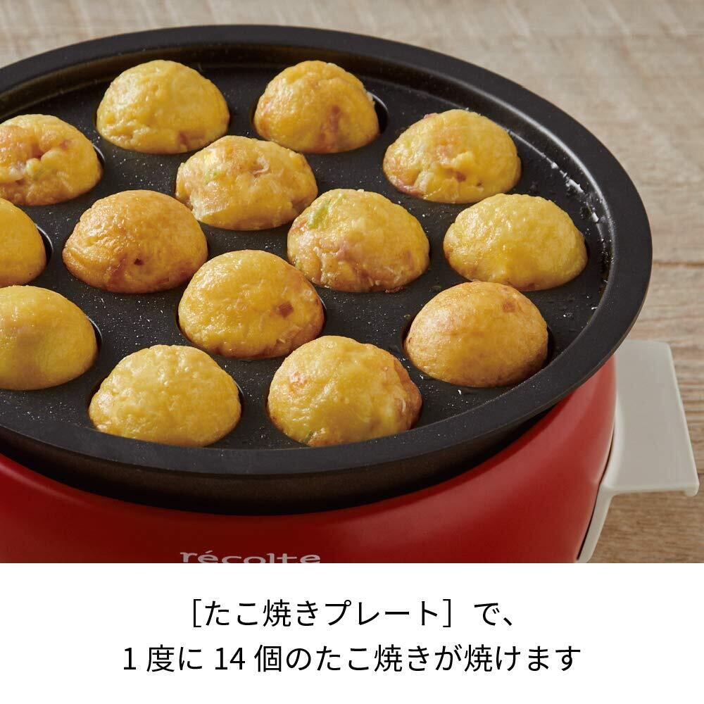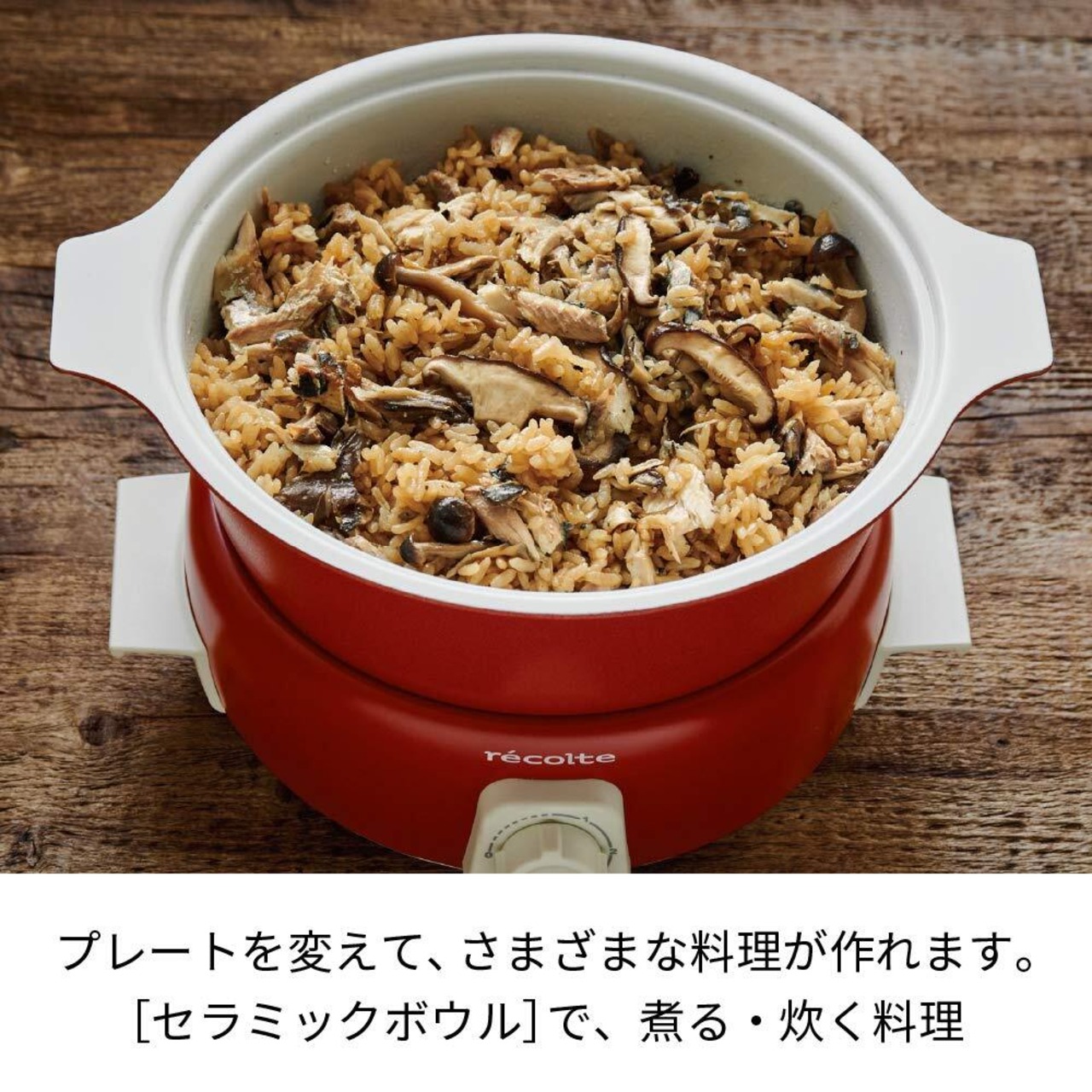 レコルト ポットデュオ タント 卓上電気鍋 卓上鍋 両手鍋 深鍋 多機能 温度調節可能 ふた付き たこ焼きプレート セラミックボウル 煮る 炊く 蒸す 鍋サイズ20.5cm 容量1.9L RPF-2 recolte 本体 レッド