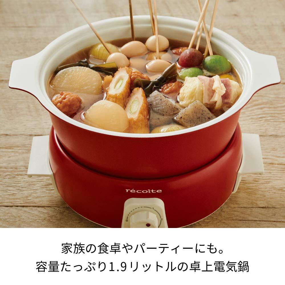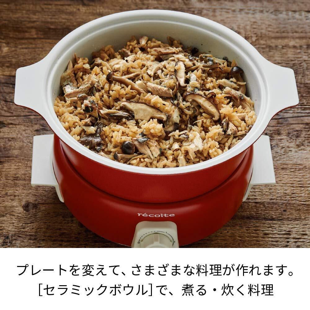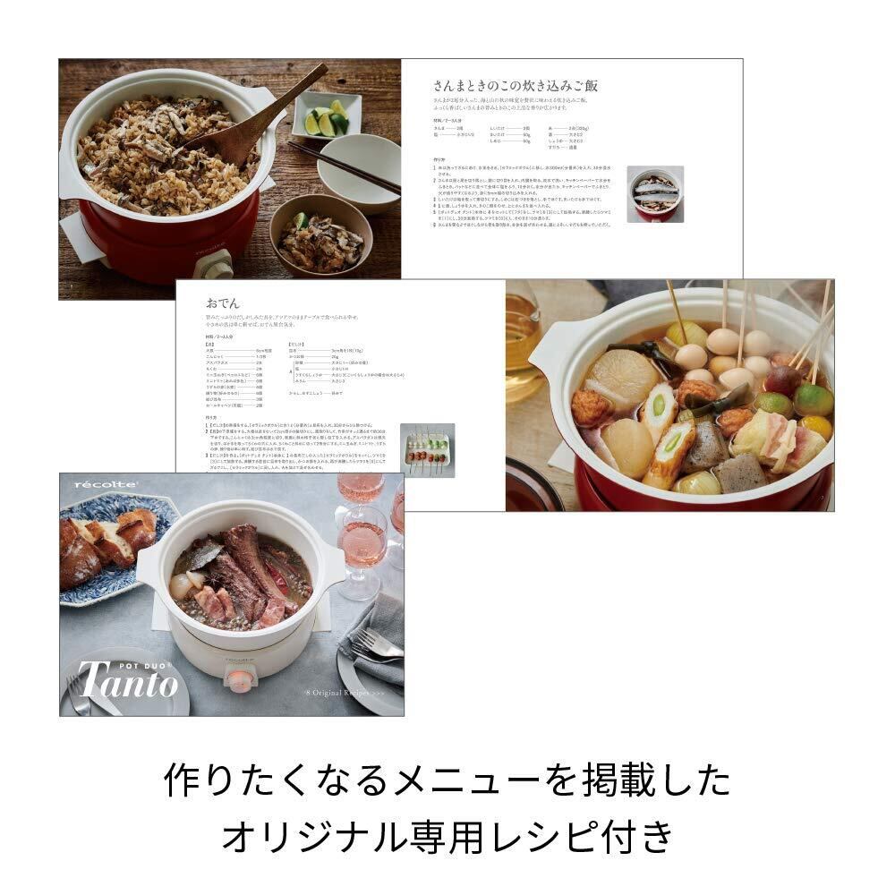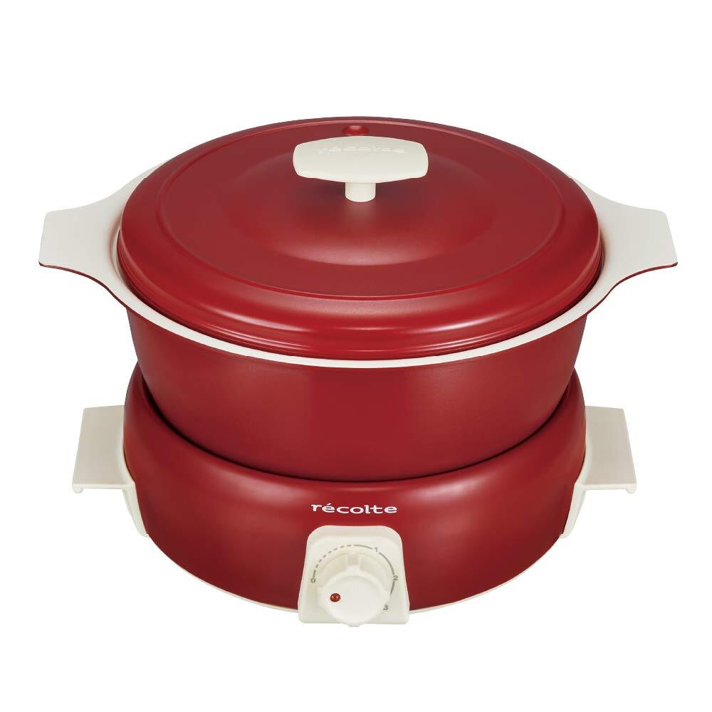 【在庫限り】レコルト ポットデュオ タント 卓上電気鍋 卓上鍋 両手鍋 深鍋 多機能 温度調節可能 ふた付き たこ焼きプレート セラミックボウル 煮る 炊く 蒸す 鍋サイズ20.5cm 容量1.9L RPF-2 recolte 本体 レッド