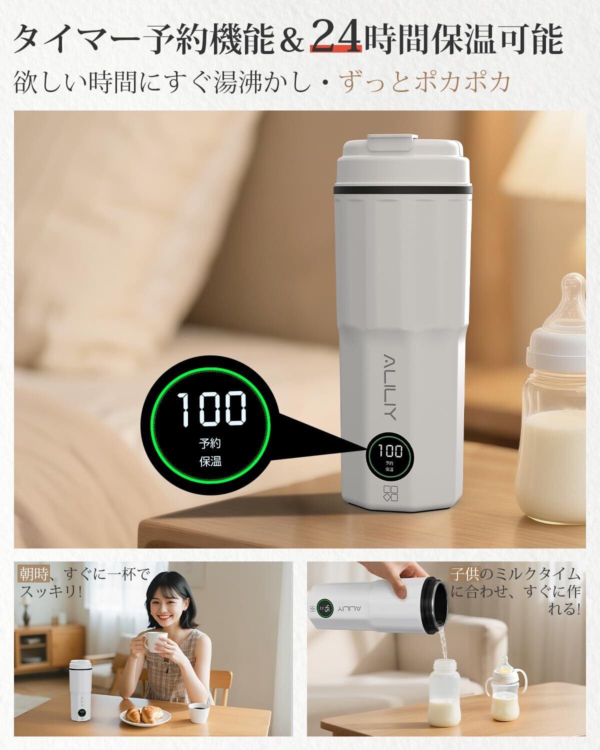100〜240V 持ち運び便利、300W、ポータブル電源で使える、6段階温度調節、長時間保温、1〜24時間予約、400ml大容量、5〜8分急速沸騰、304ステンレス、二重構造、空だき防止機能、PS… 表示を増やす