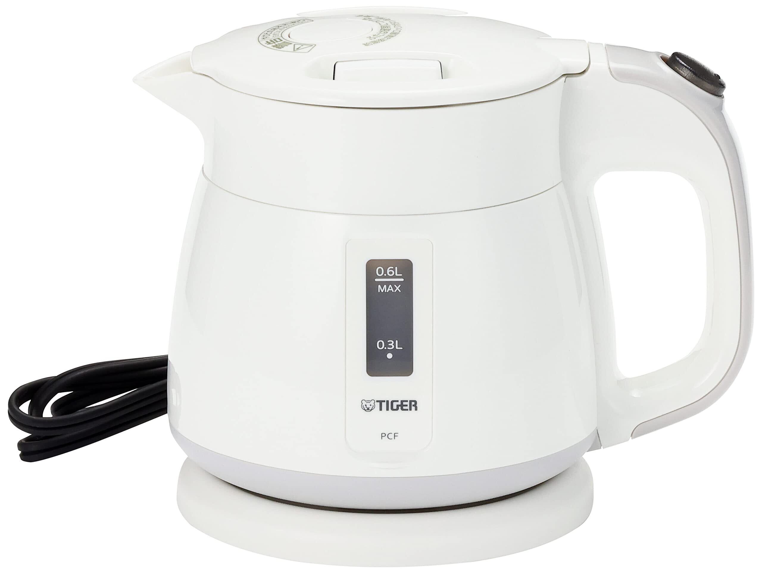 タイガー魔法瓶(TIGER) 電気ケトル 湯沸かし わく子 0.6L 転倒お湯漏れ防止 カラ炊き防止 ホワイト PCF-G060W