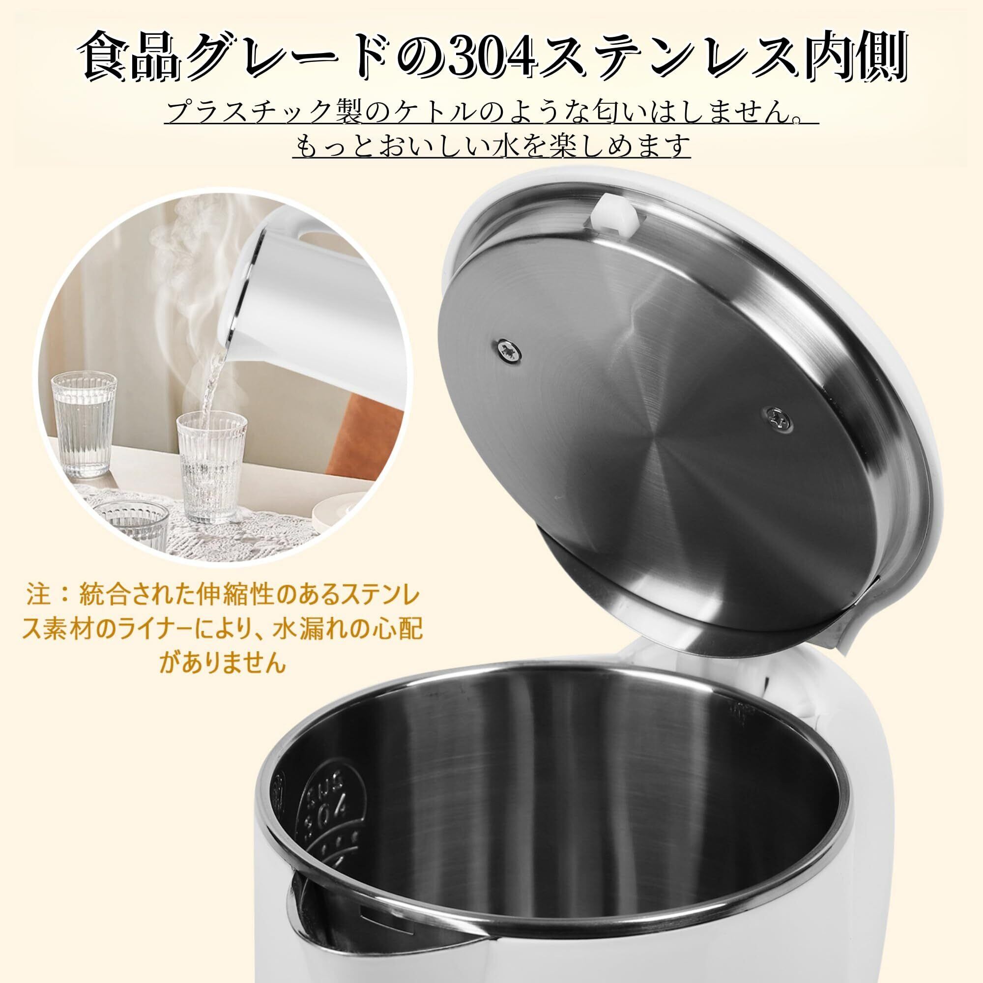 ❀【一体型のステンレス内側】一体型のステンレス内側の設計で、縫い目なくて水漏れの問題がありません。また、ガラスやプラスチック製のケトルと比べ、プラスチック臭などの異臭が一切ないです。