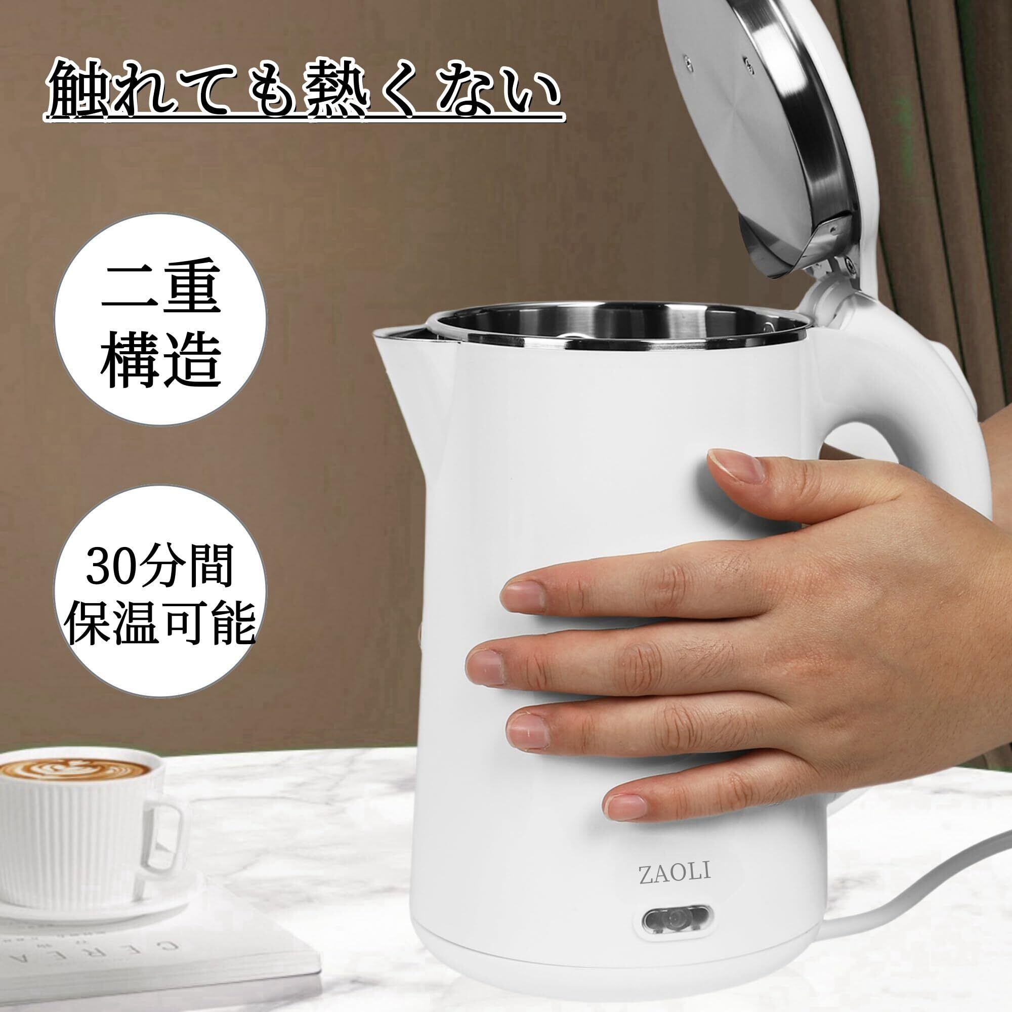 【特別価格】ZAOLI 電気ケトル 小型 1.0L 1200W ハイパワー ステンレス内側 おしゃれ 空焚き防止 自動電源OFF 二重構造 触れても熱くない お手入れ簡単 PSE認証済み【1年間品質】 ZL-K10-P ホワイト