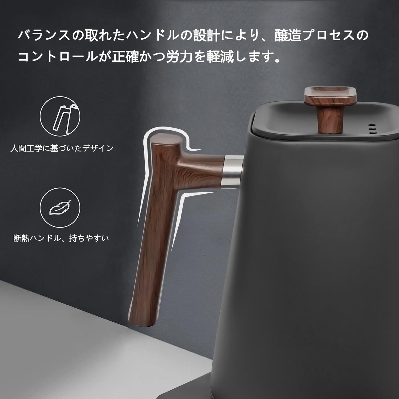 【在庫限り】電気ケトル 温度調節 コーヒーケトル 1.0L 1200W 1℃単位温度設定/24時間保温機能付き/ドリップタイマー機能/空焚き防止機能/オートパワオフ/PSE認証済み ドリップケトル 細口 コーヒーポット コーヒー お茶 記念日 クリスマス プレゼント(Black)