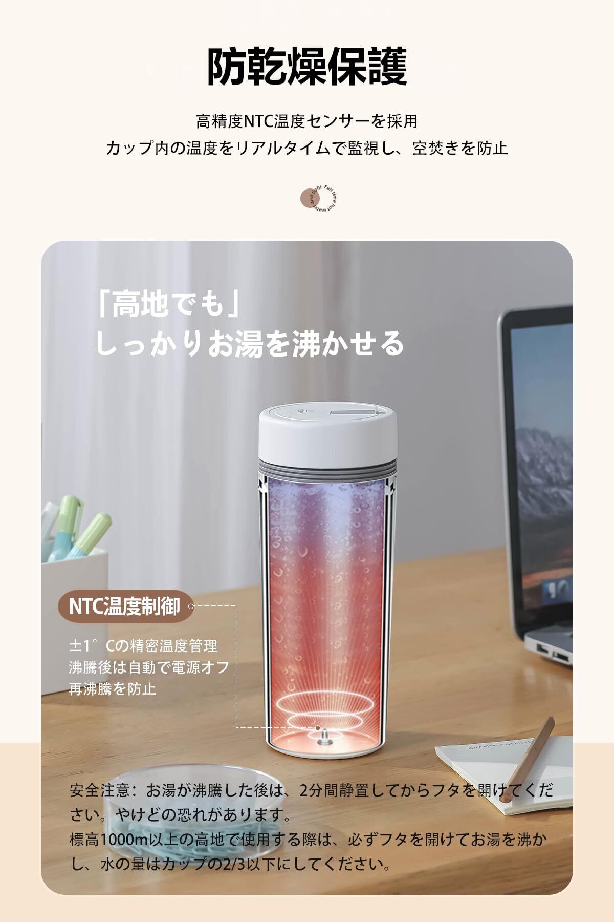 ■【安全を考慮した空焚き防止機能!】空焚き防止機能を搭載しており、水がない状態では自動的に電源がオフになります。安全性を重視した設計で、安心して使用できます。