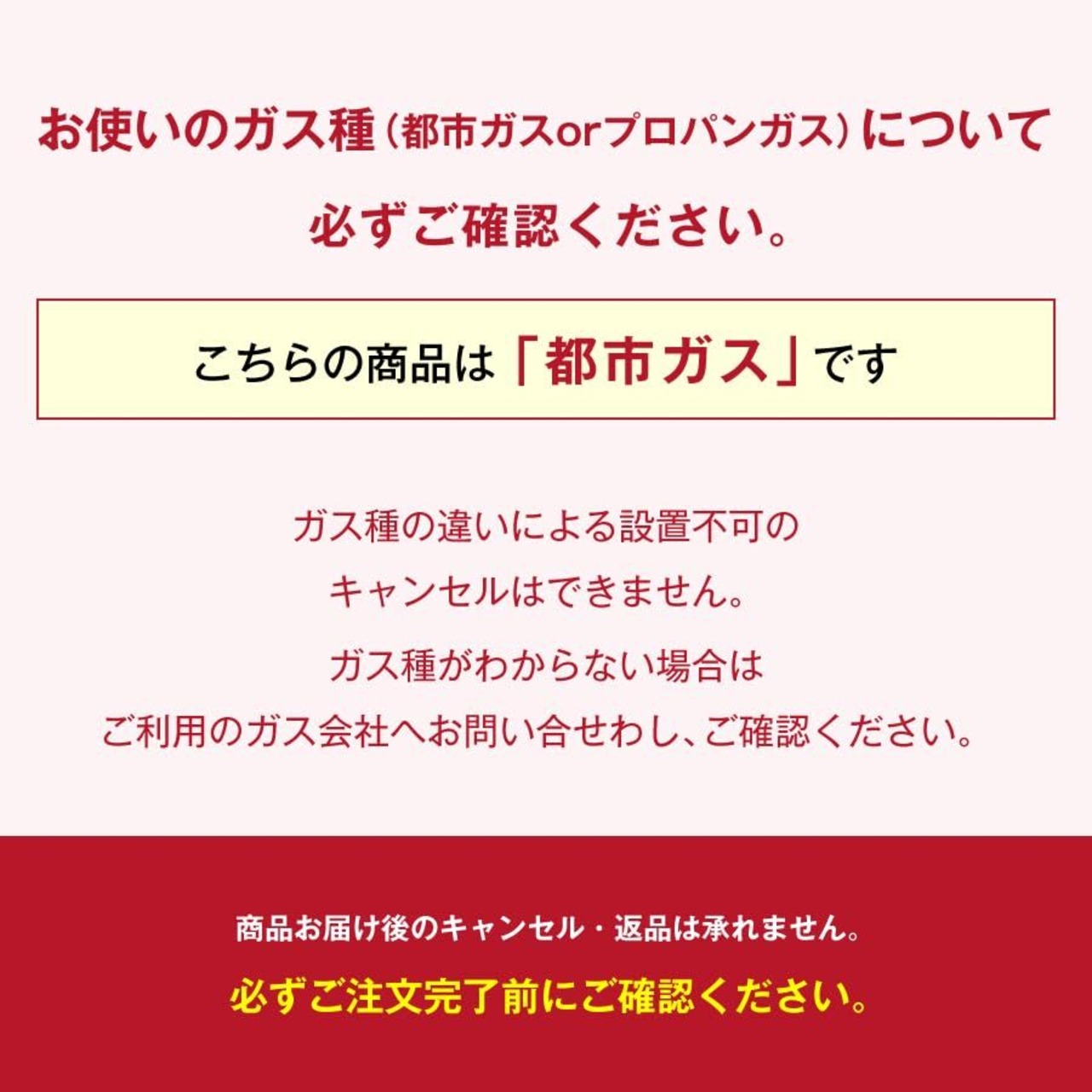 【重要】このガスコンロは《都市ガス用》と《プロパンガス用》があります。ガス種が違うと使用できませんので、ご自宅のガス種を必ず確認し選択してください。